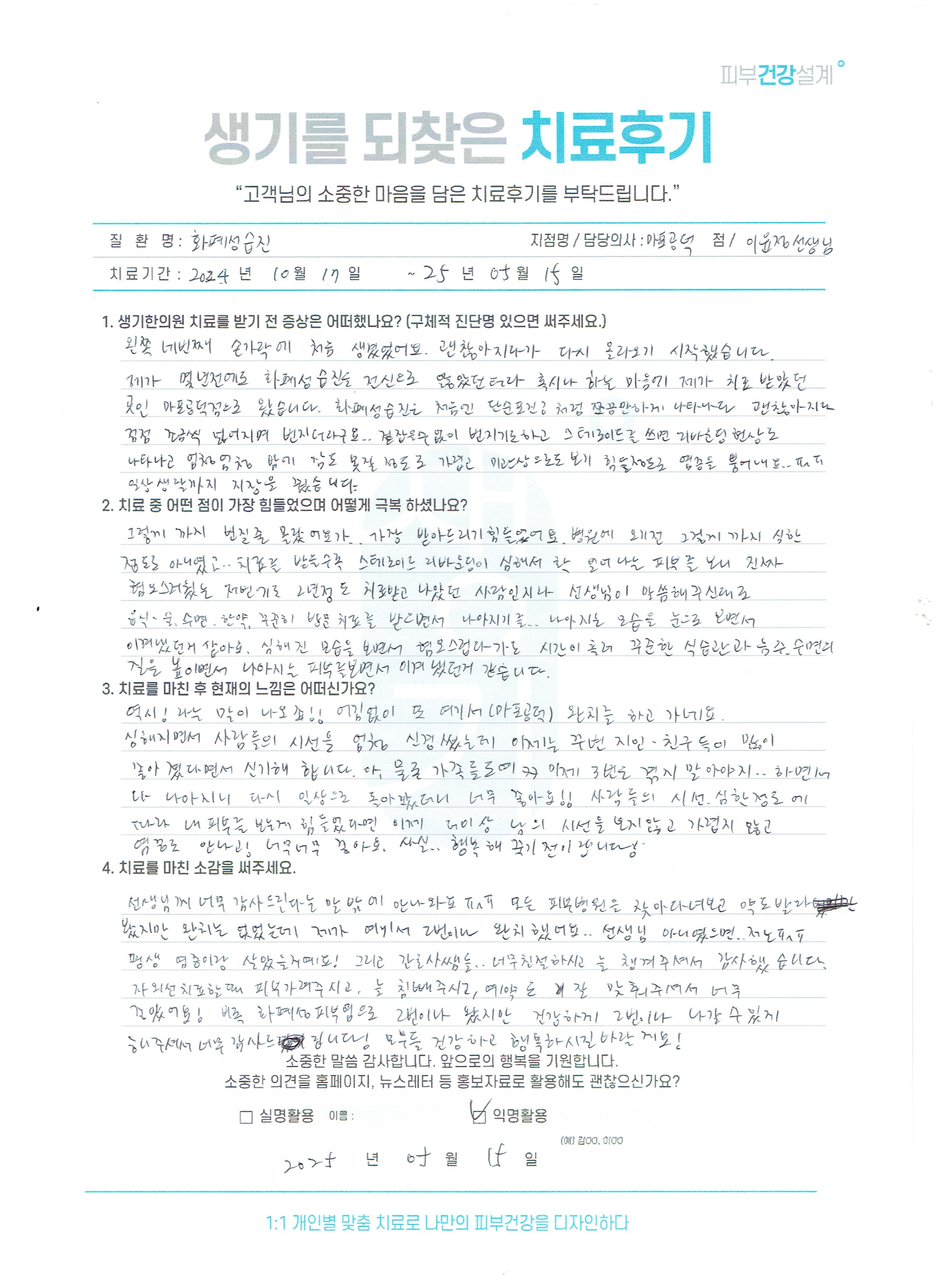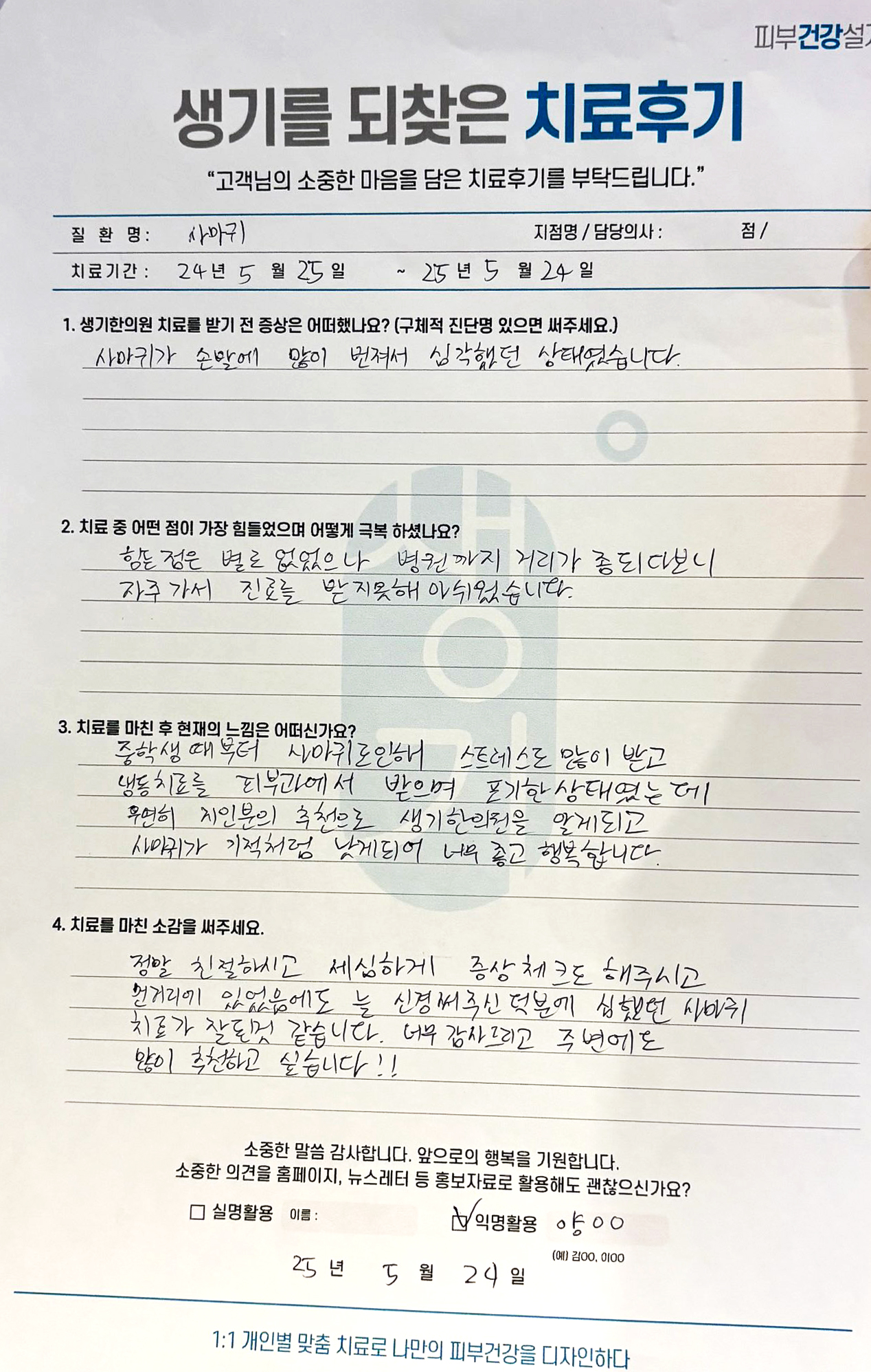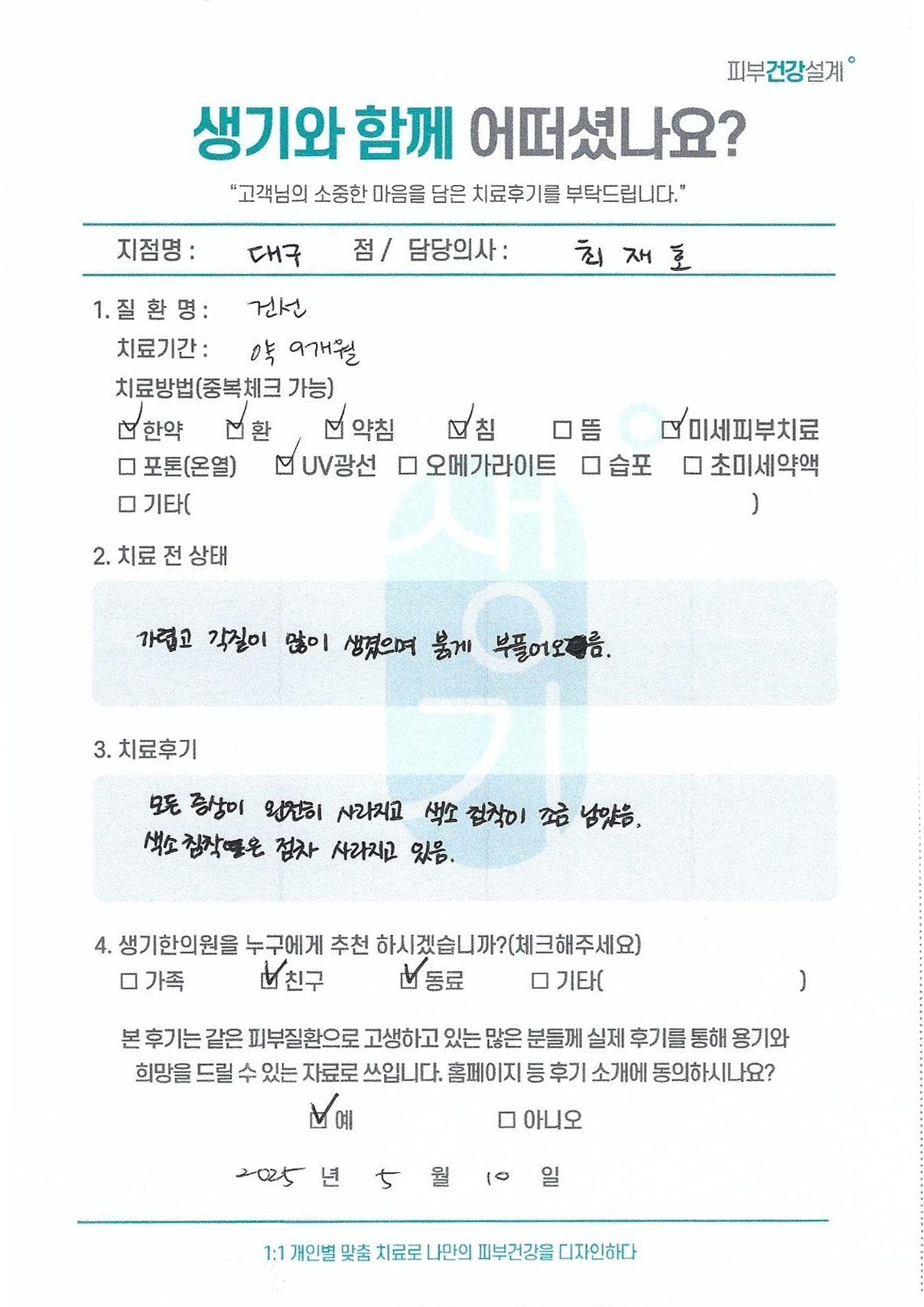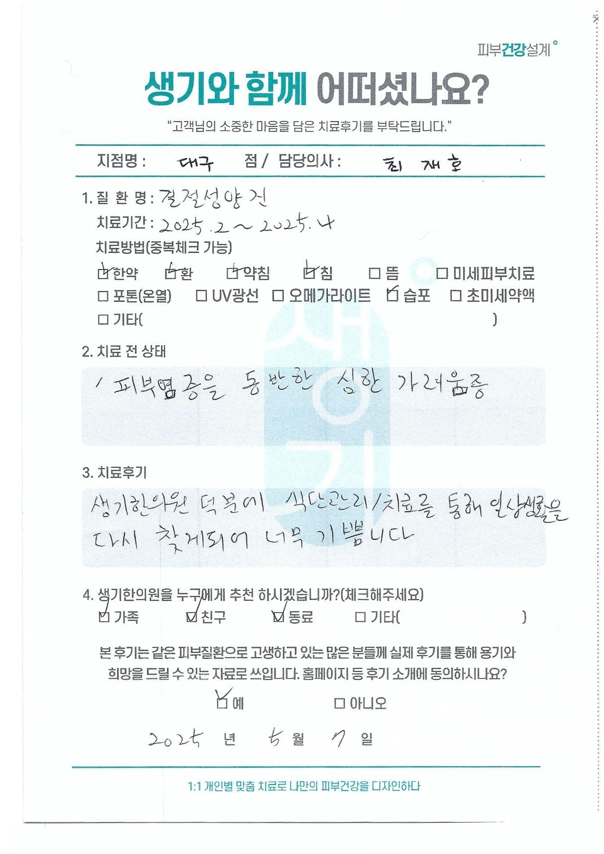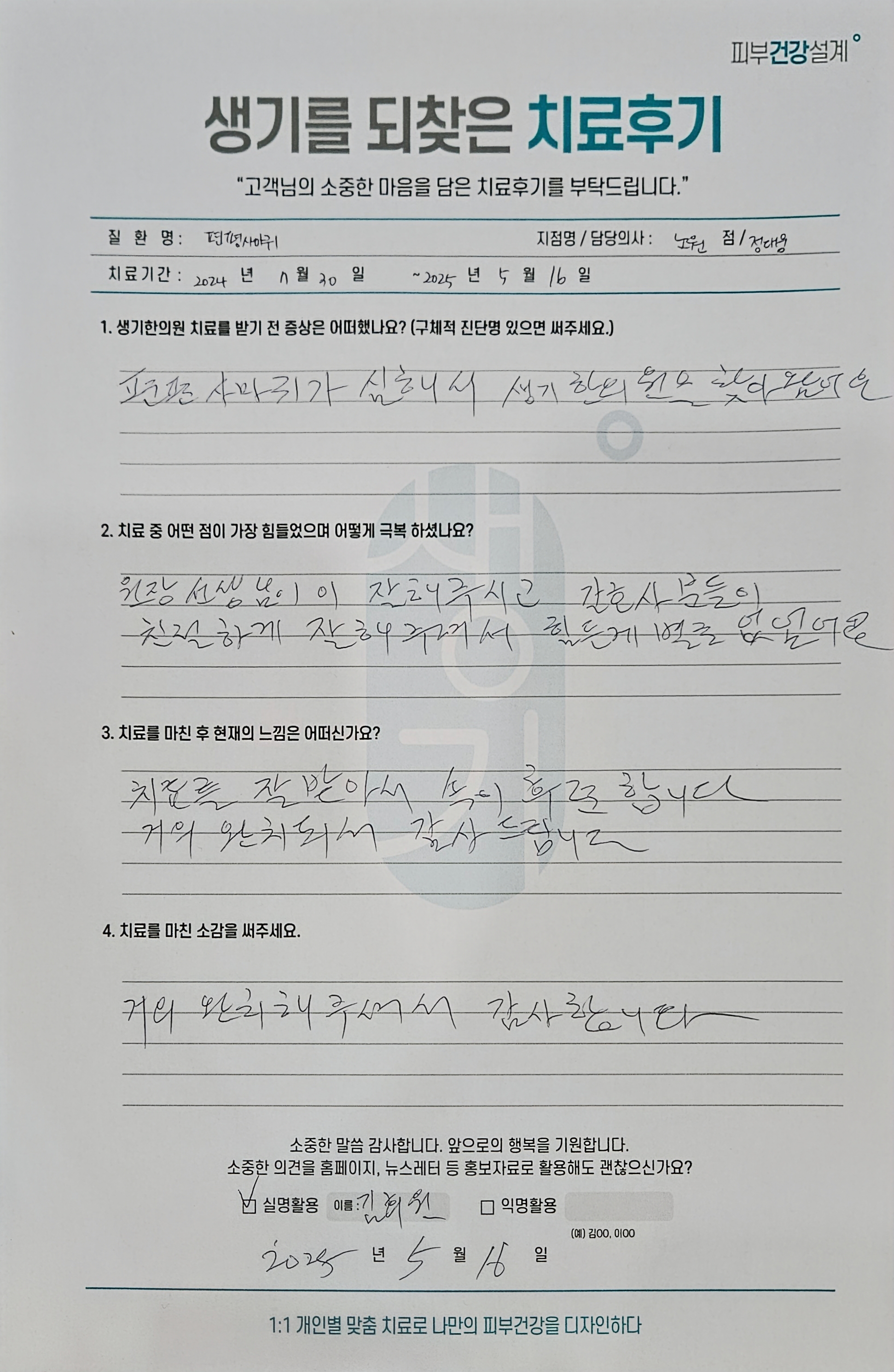 생기한의원과 함께하신 생생한 자필 및 영상 후기를 소개합니다.