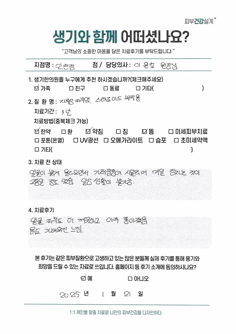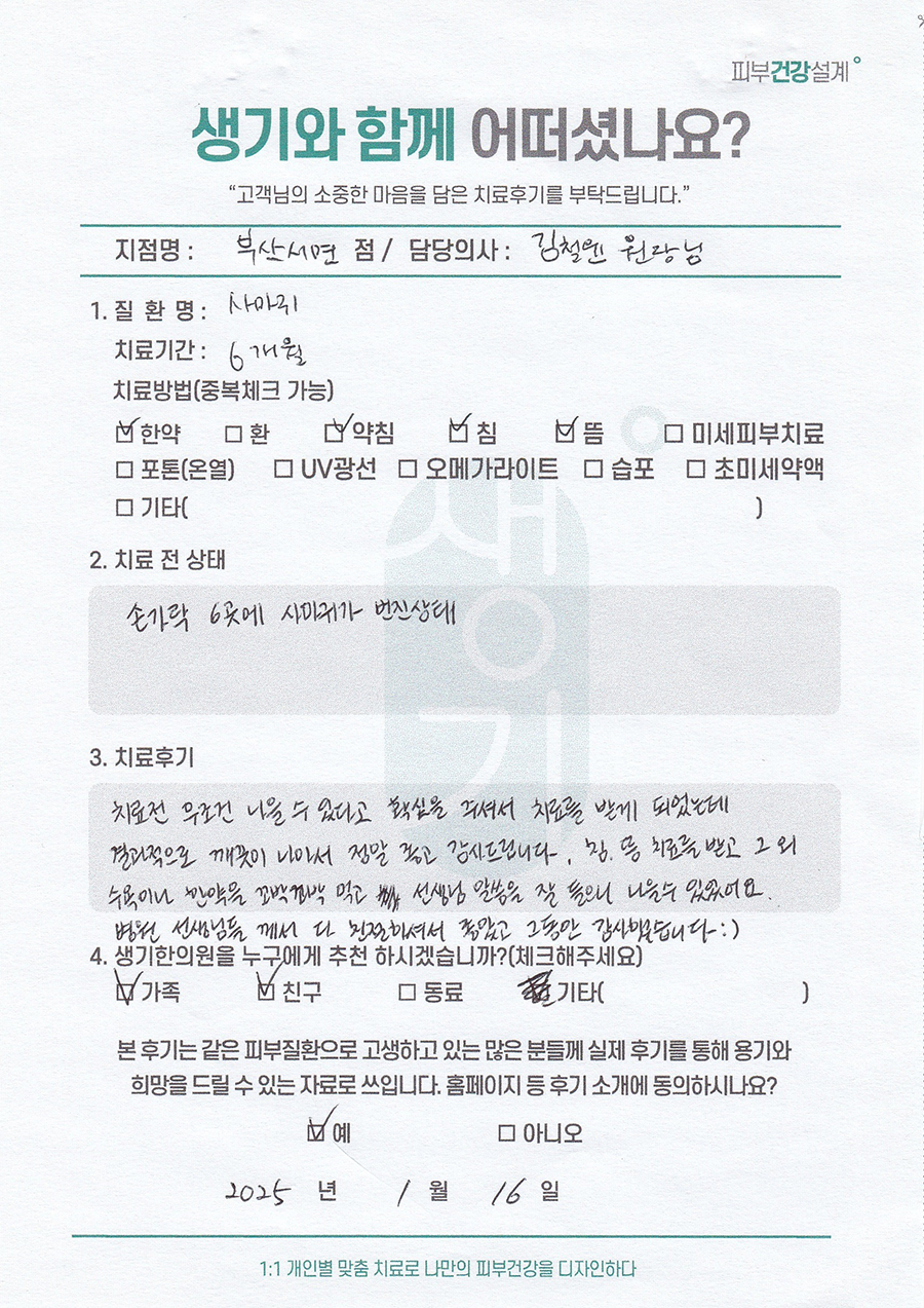 생기한의원과 함께하신 생생한 자필 및 영상 후기를 소개합니다.