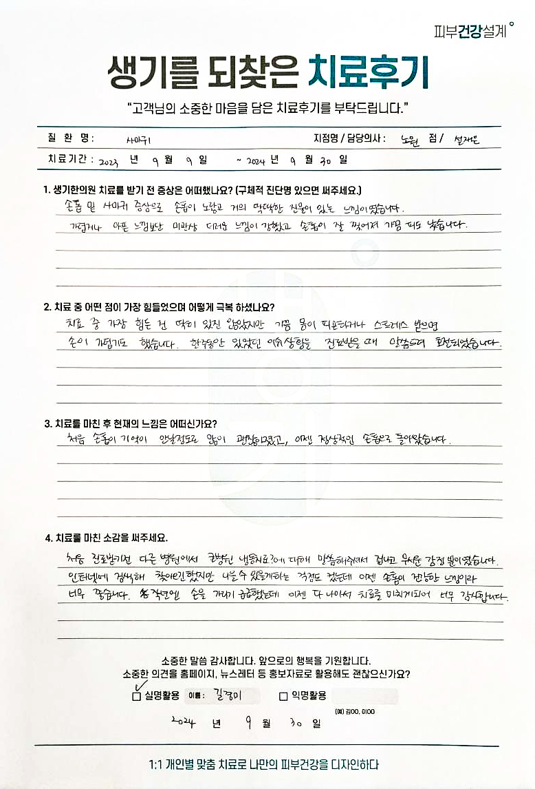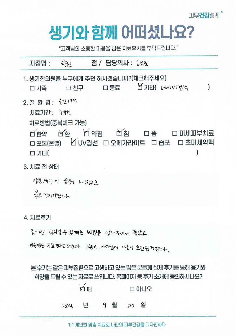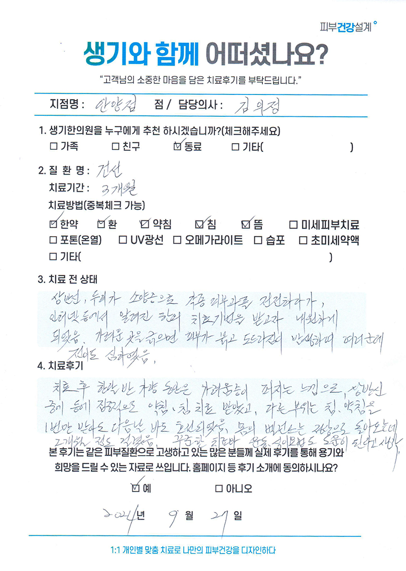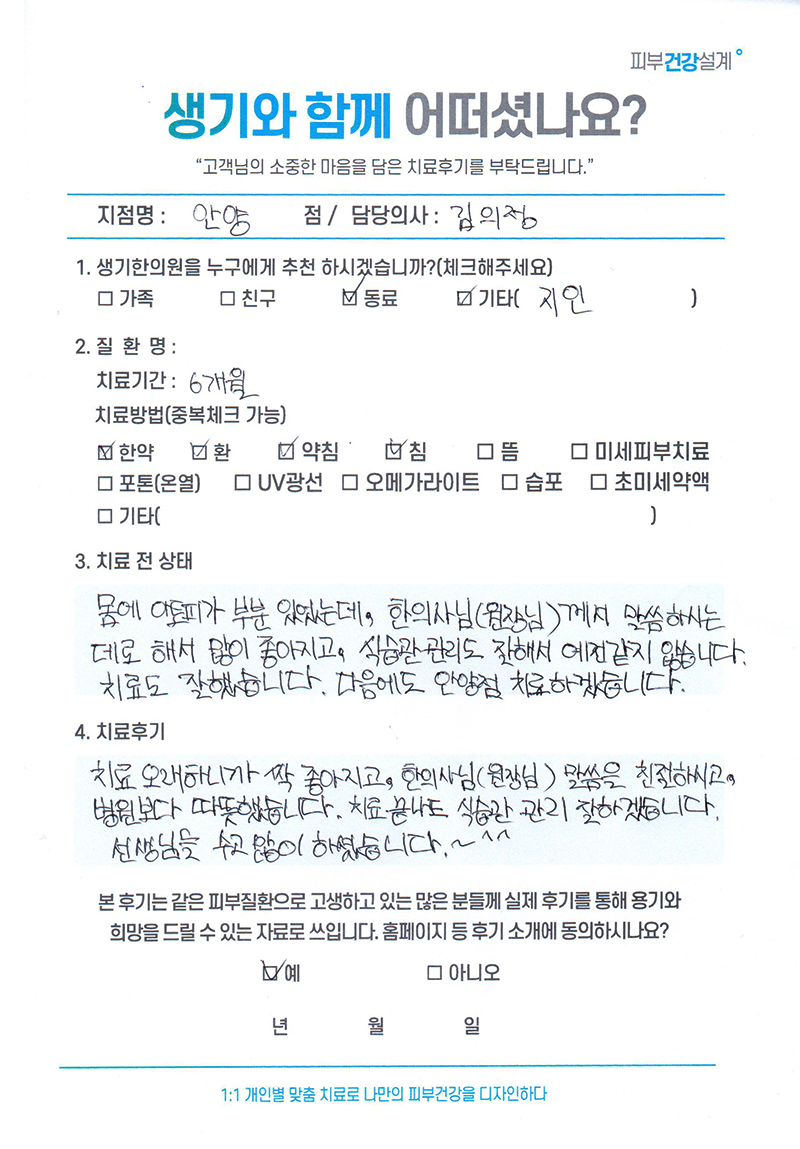 생기한의원과 함께하신 생생한 자필 및 영상 후기를 소개합니다.