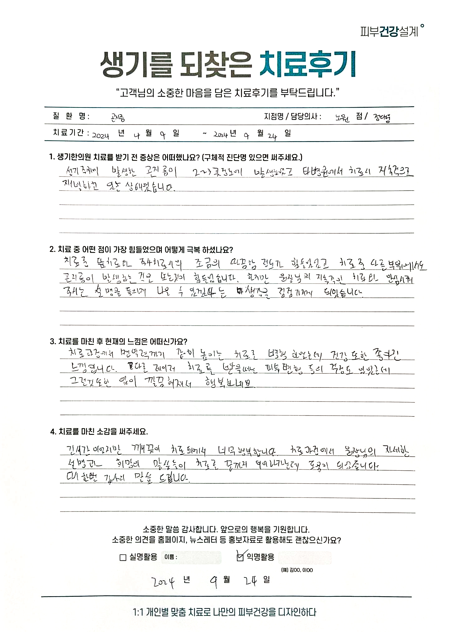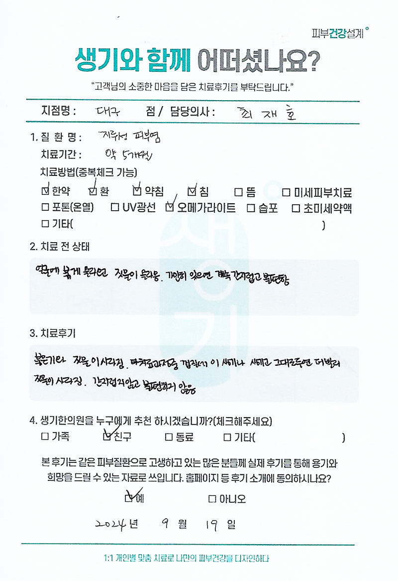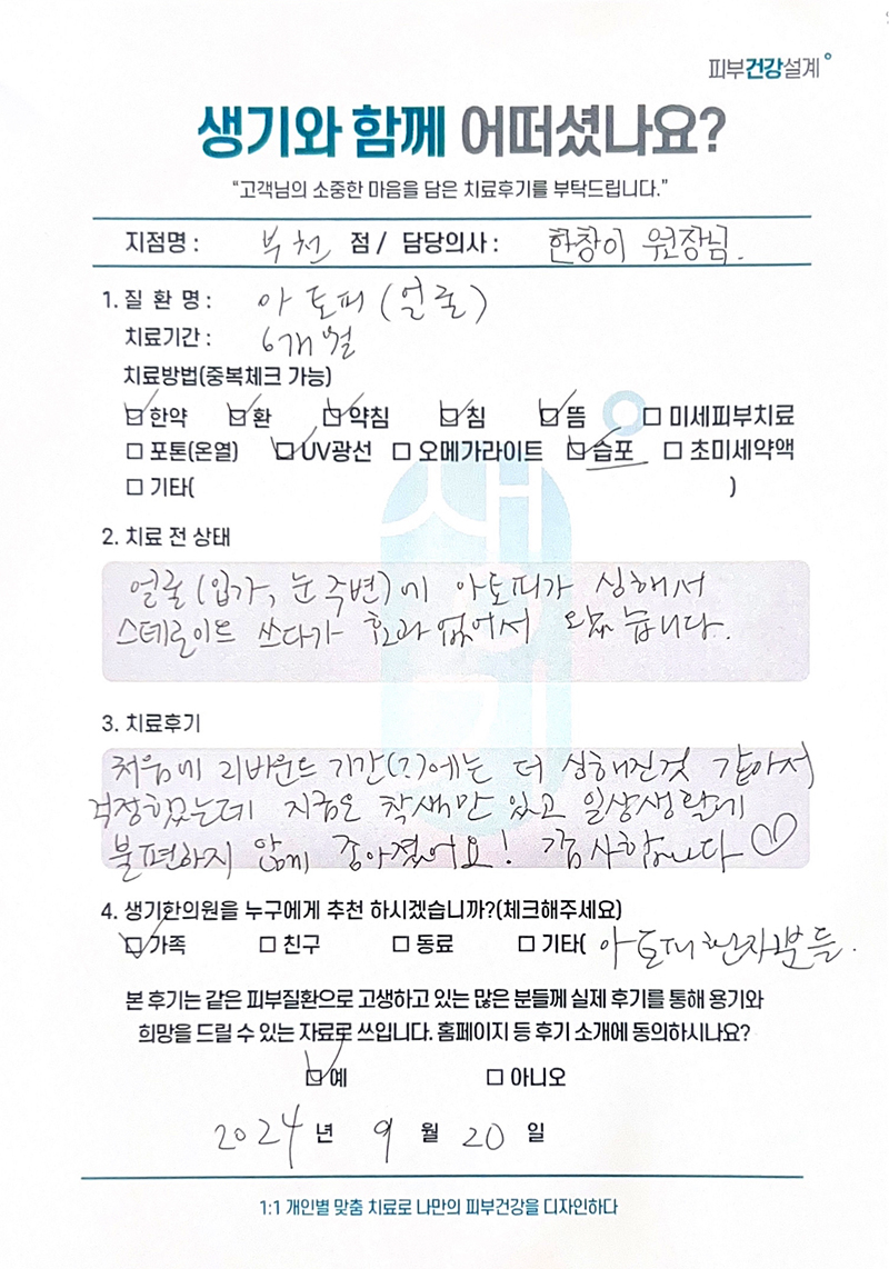 생기한의원과 함께하신 생생한 자필 및 영상 후기를 소개합니다.