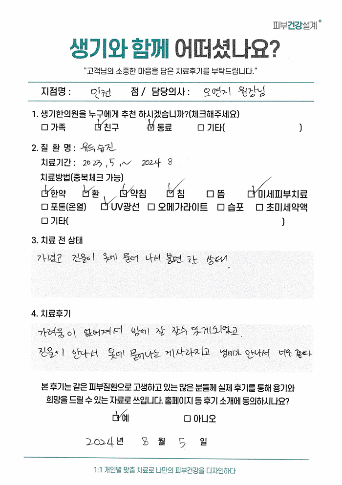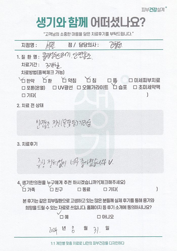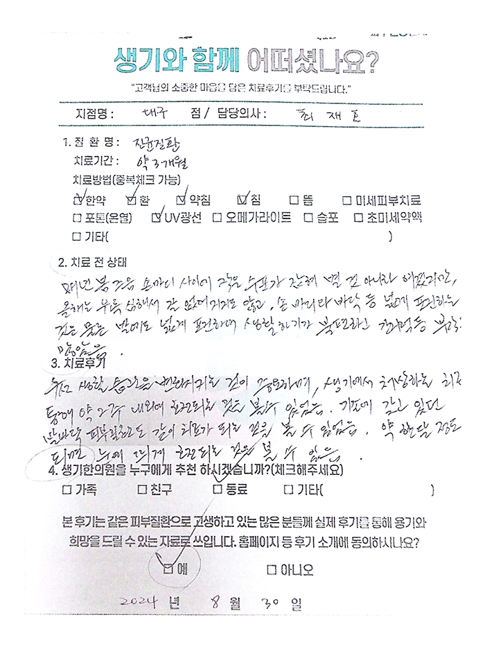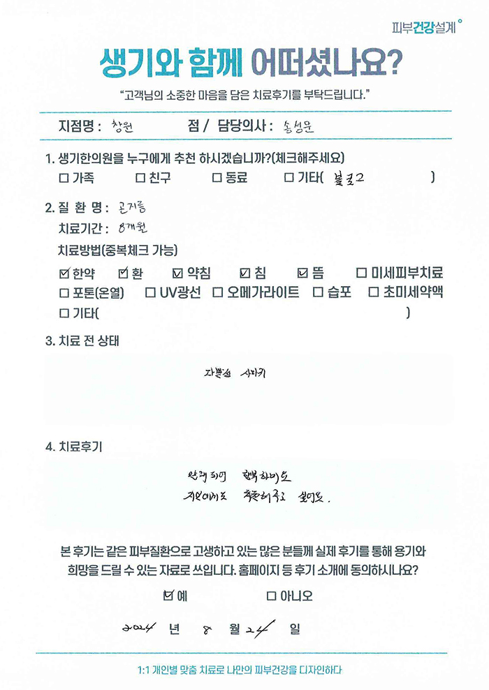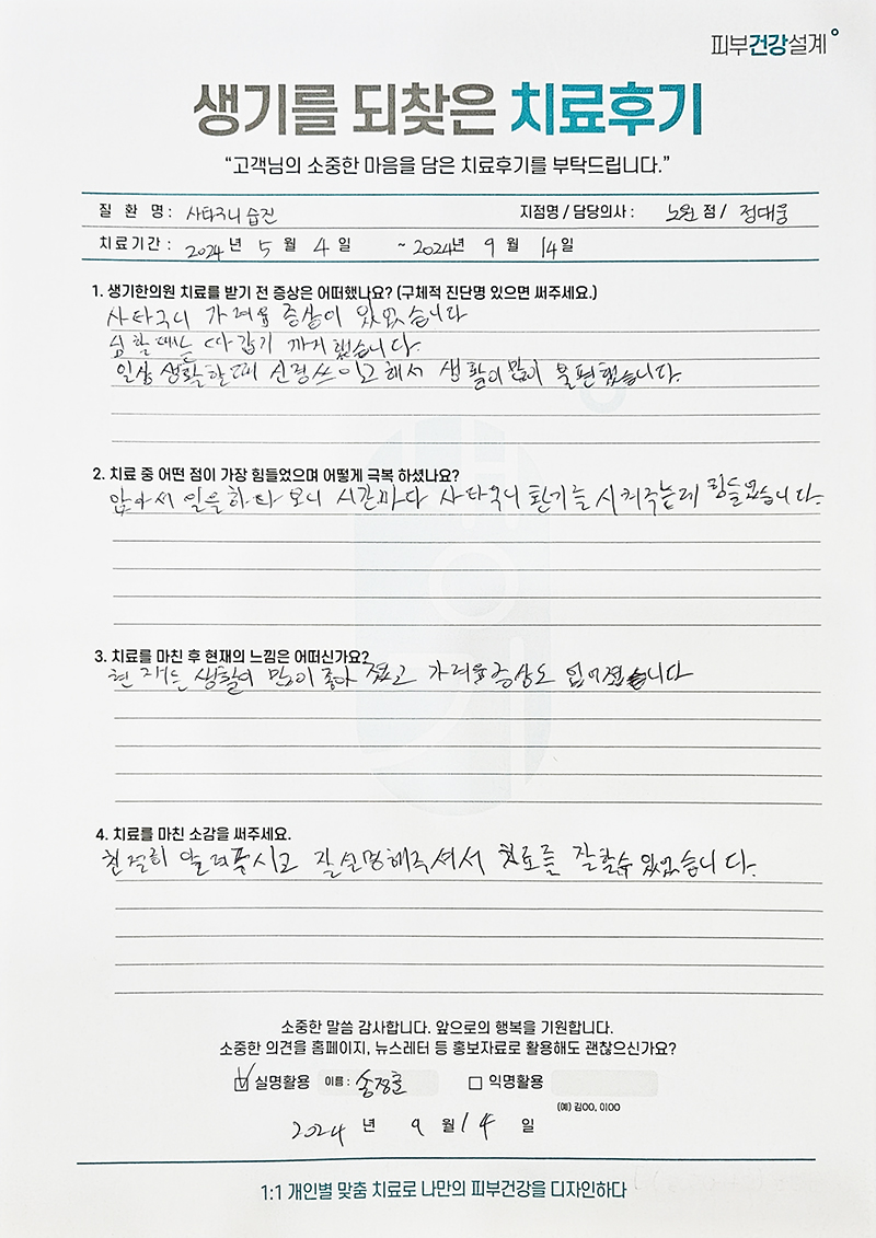 생기한의원과 함께하신 생생한 자필 및 영상 후기를 소개합니다.