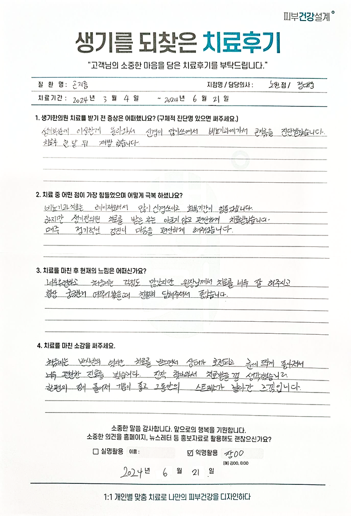 생기한의원과 함께하신 생생한 자필 및 영상 후기를 소개합니다.