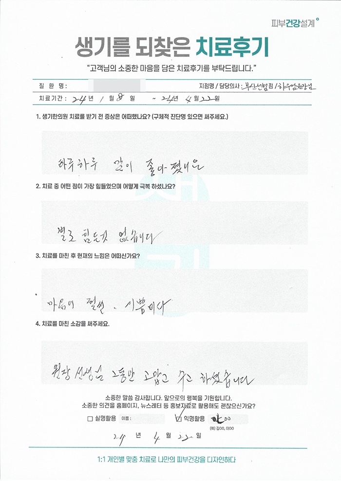 생기한의원과 함께하신 생생한 자필 및 영상 후기를 소개합니다.