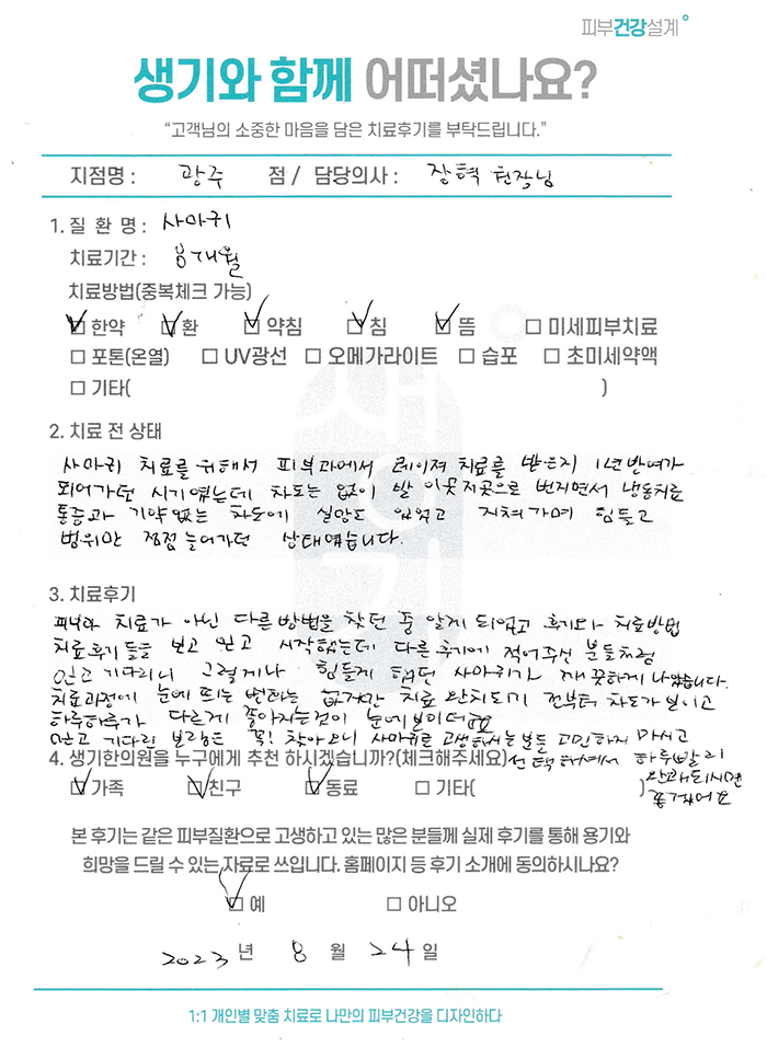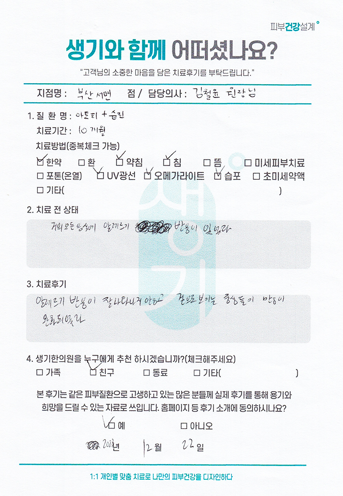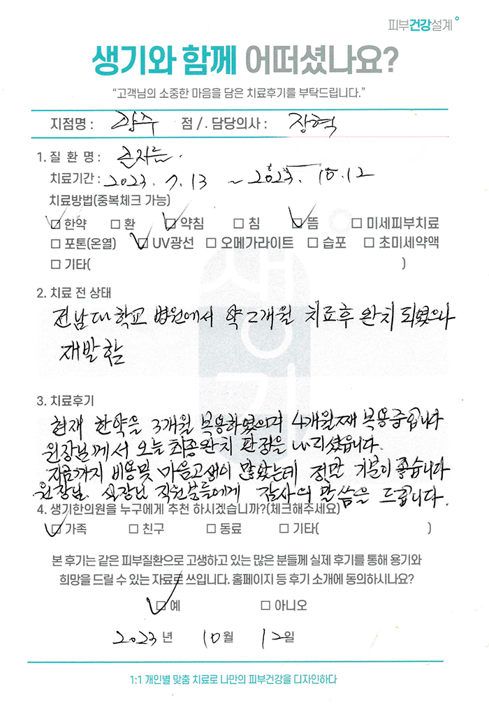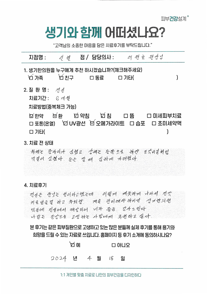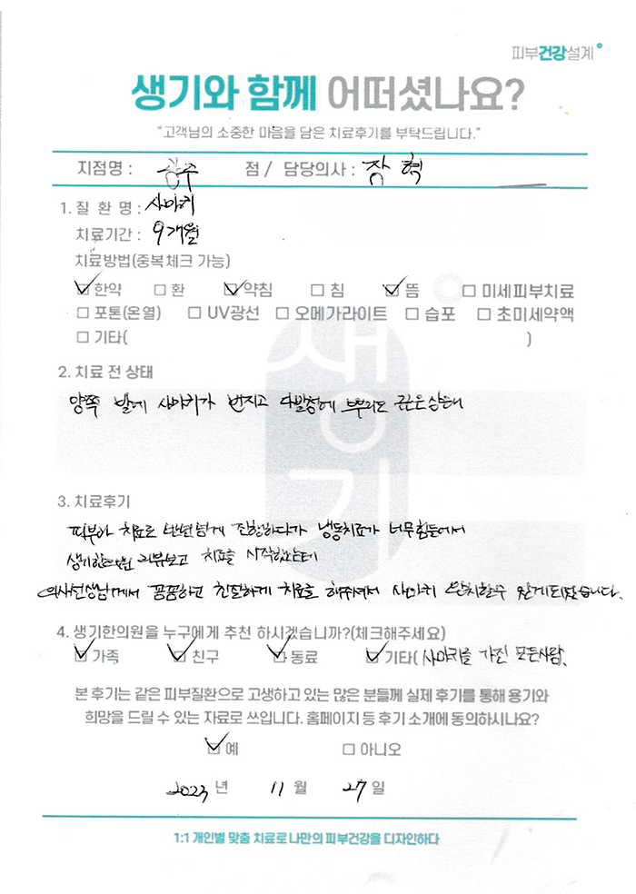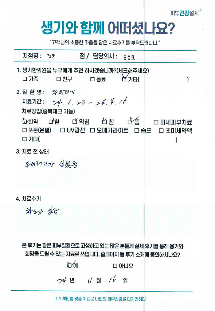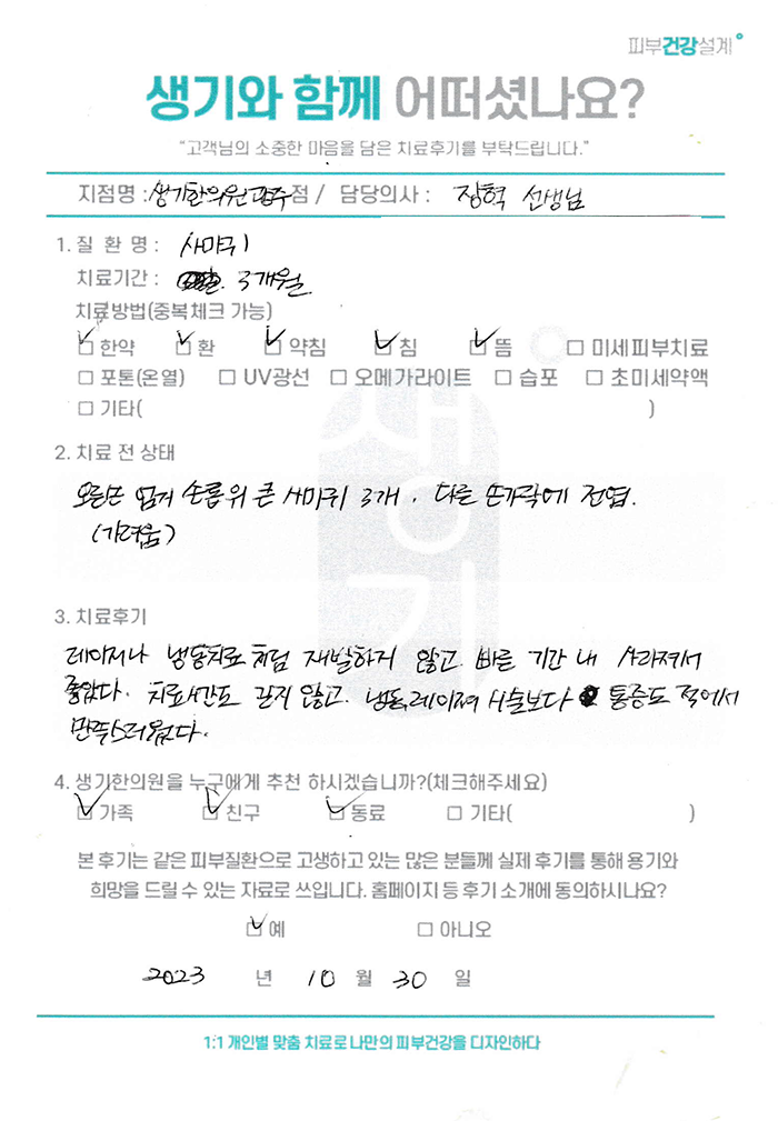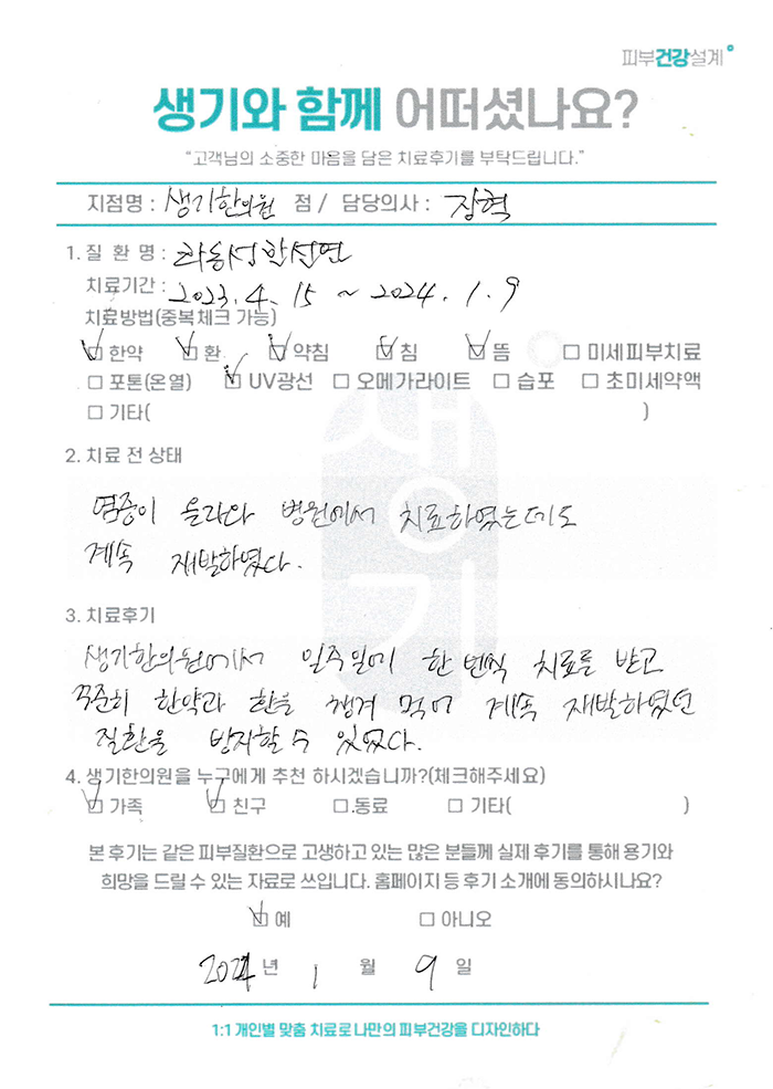 생기한의원과 함께하신 생생한 자필 및 영상 후기를 소개합니다.