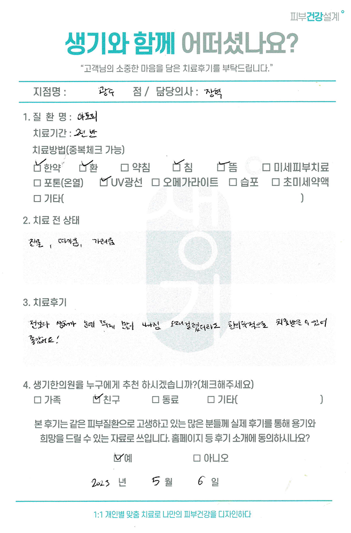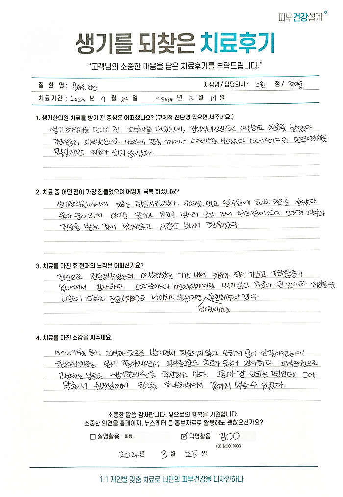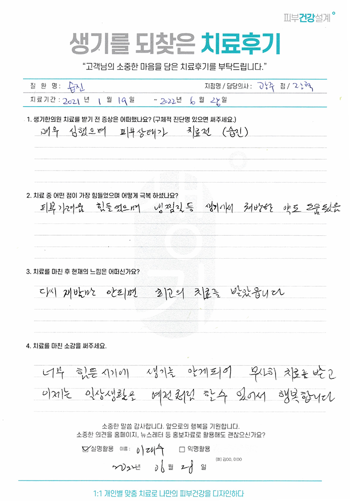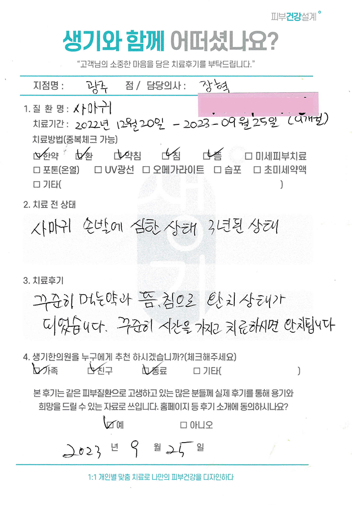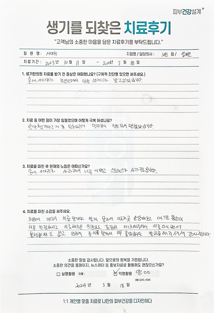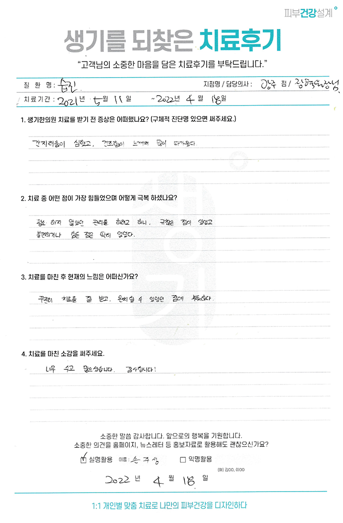 생기한의원과 함께하신 생생한 자필 및 영상 후기를 소개합니다.