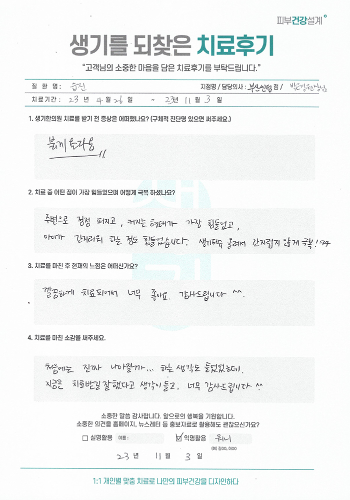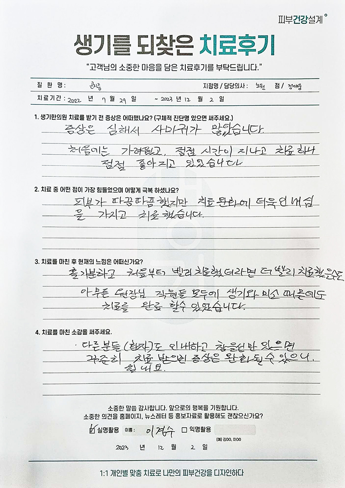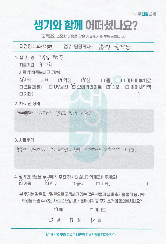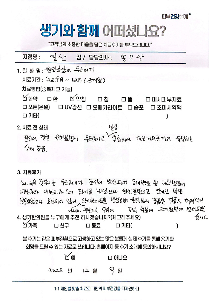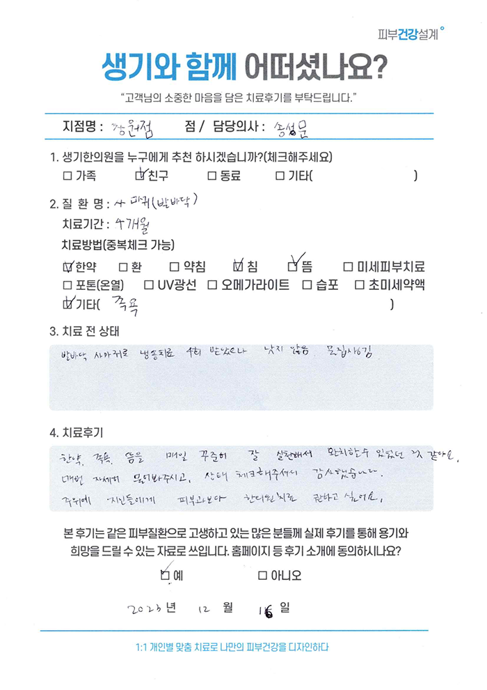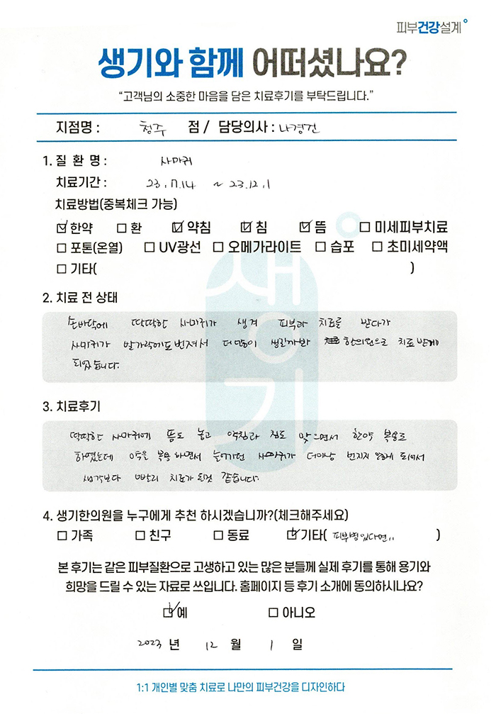 생기한의원과 함께하신 생생한 자필 및 영상 후기를 소개합니다.