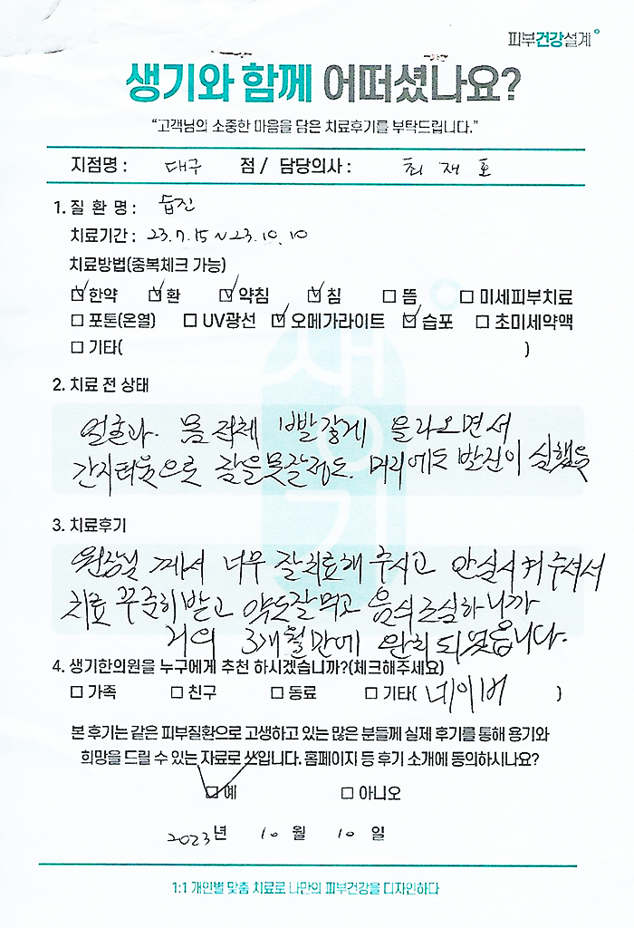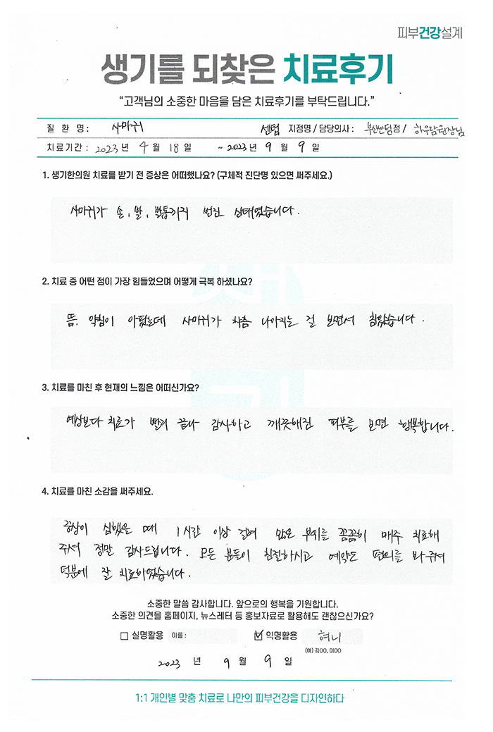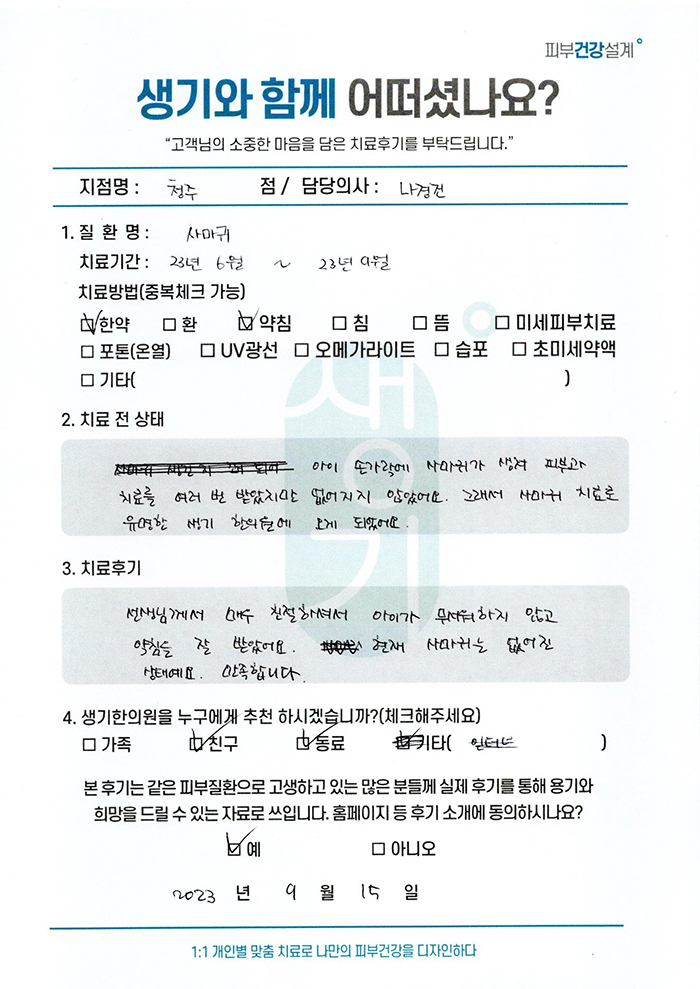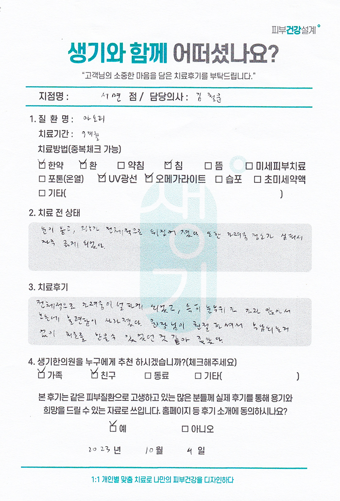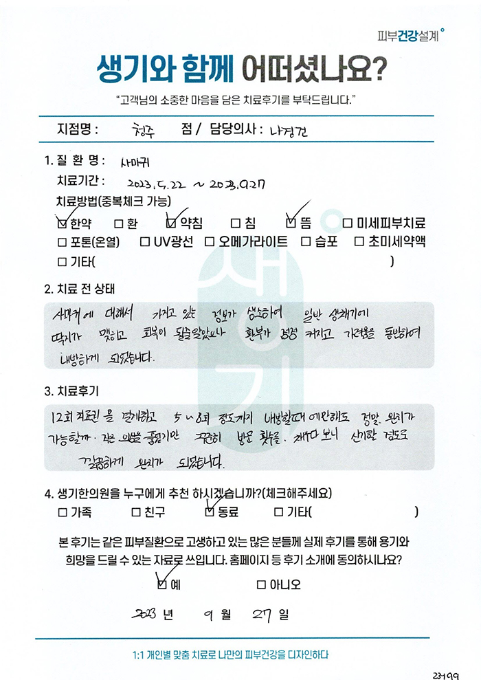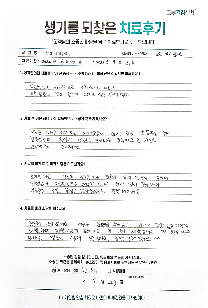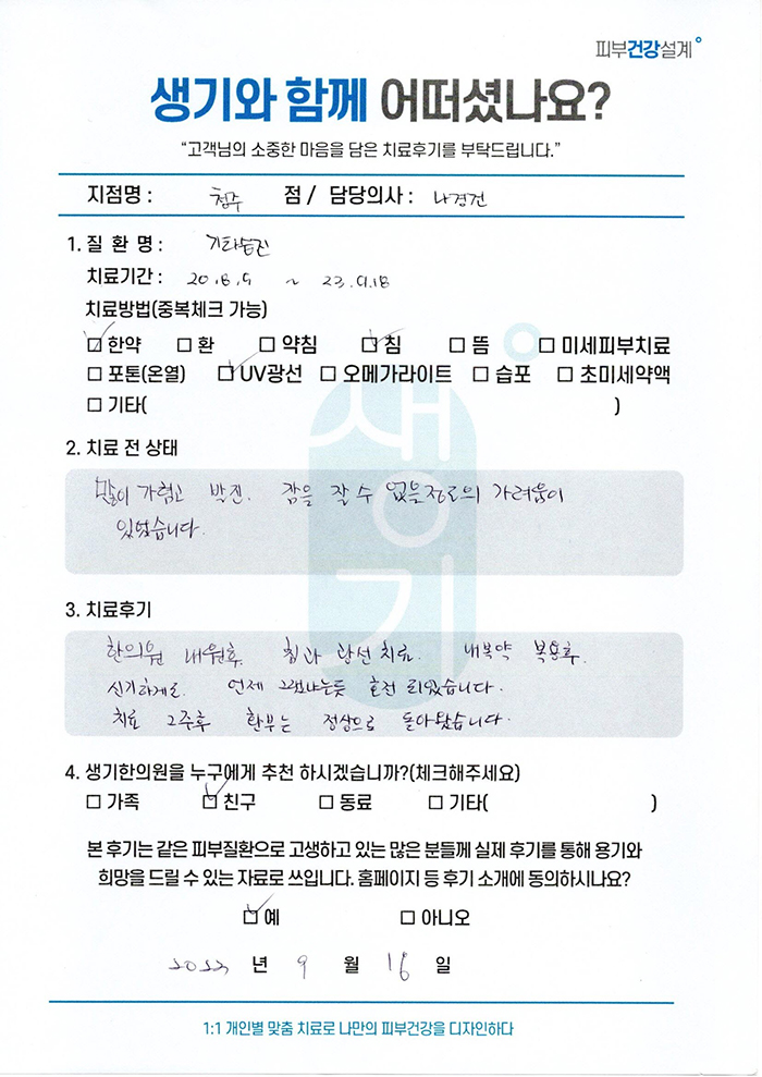 생기한의원과 함께하신 생생한 자필 및 영상 후기를 소개합니다.