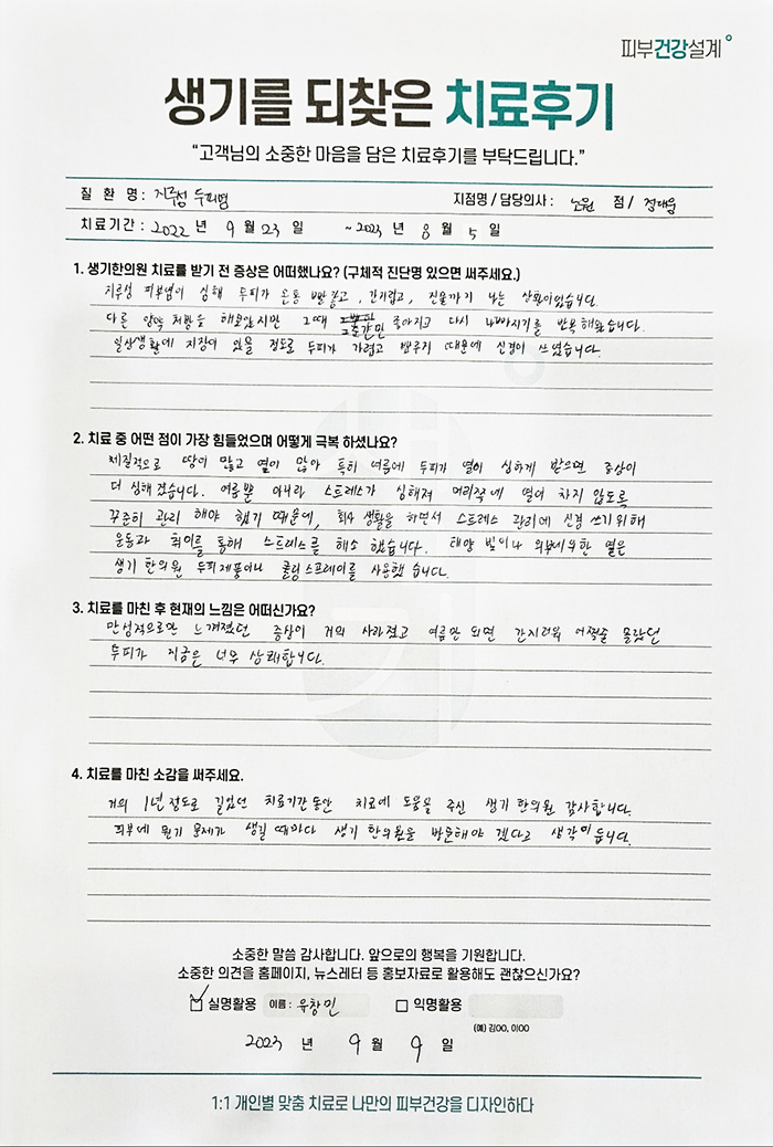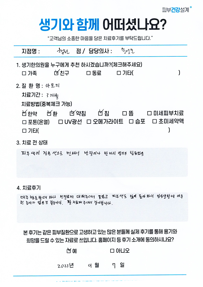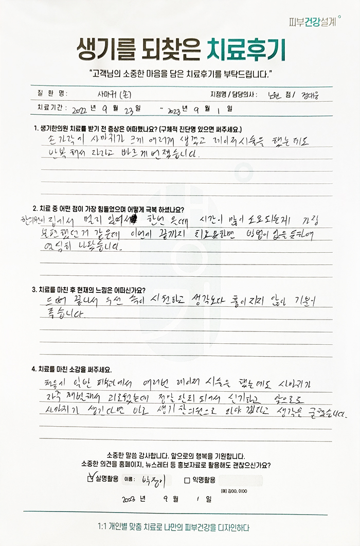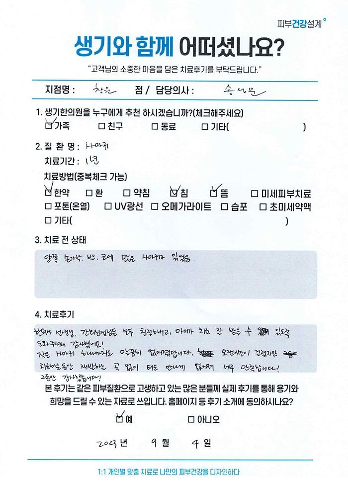 생기한의원과 함께하신 생생한 자필 및 영상 후기를 소개합니다.