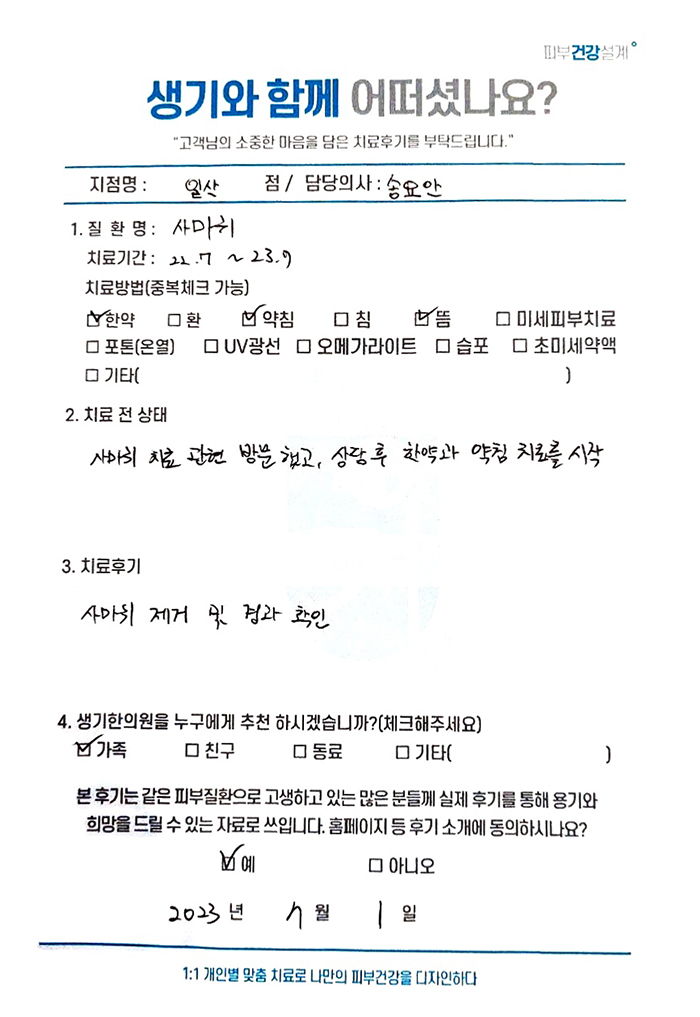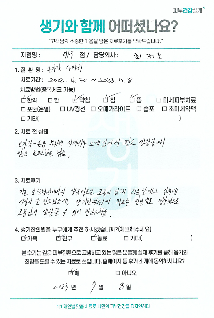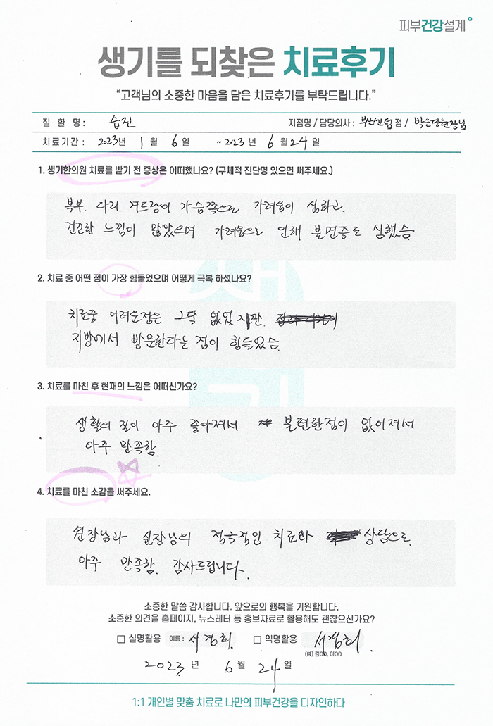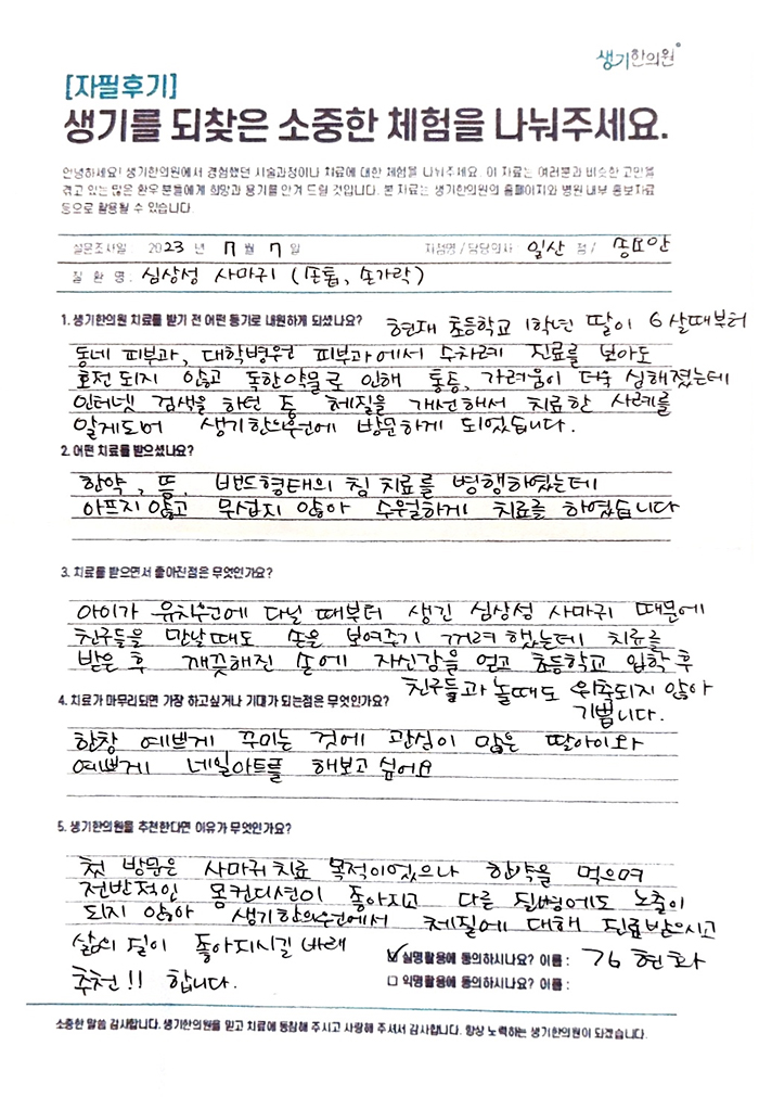 생기한의원과 함께하신 생생한 자필 및 영상 후기를 소개합니다.