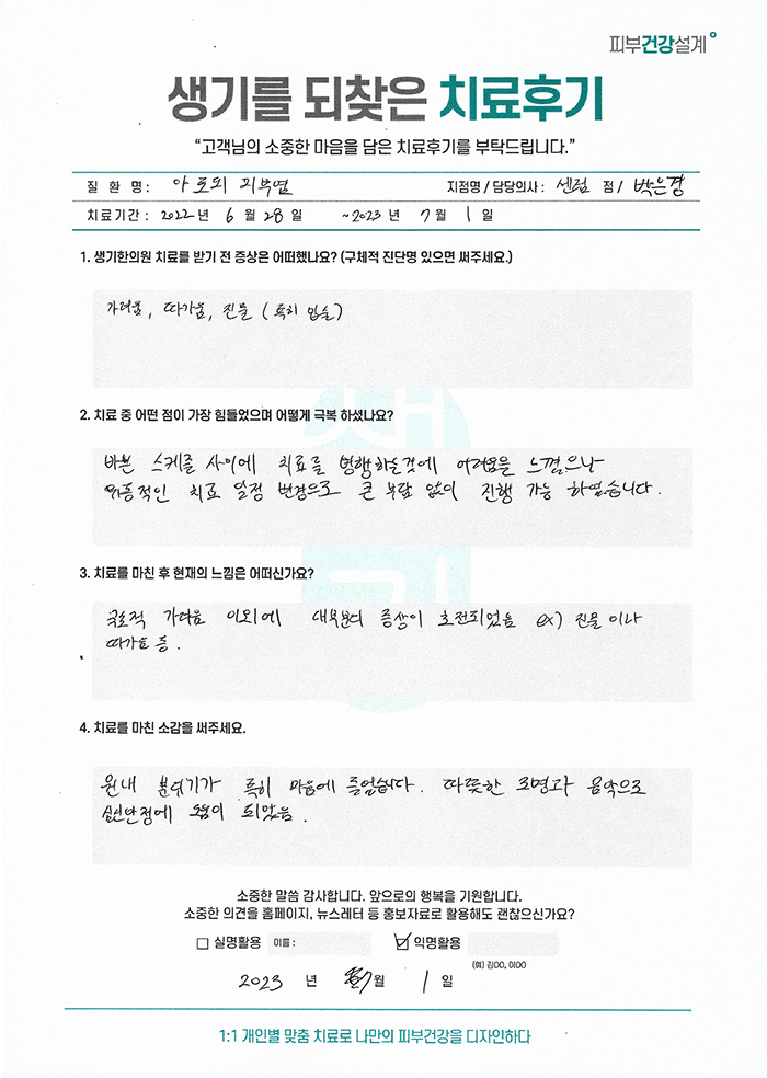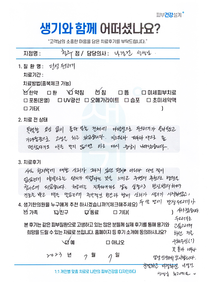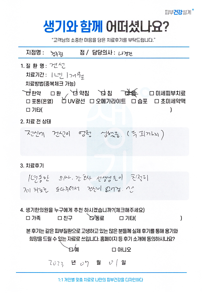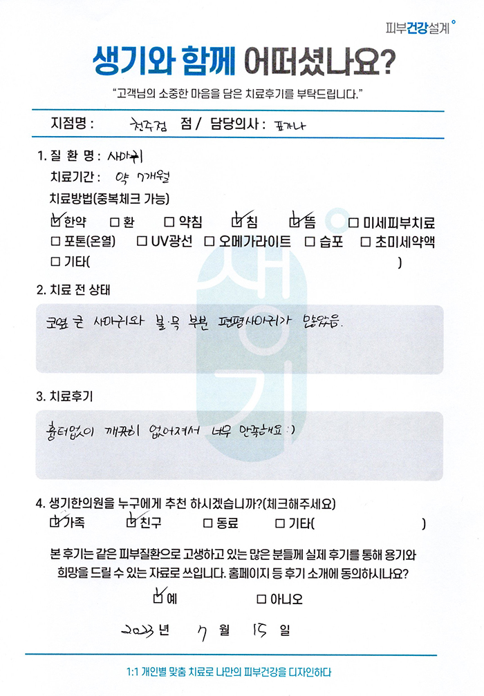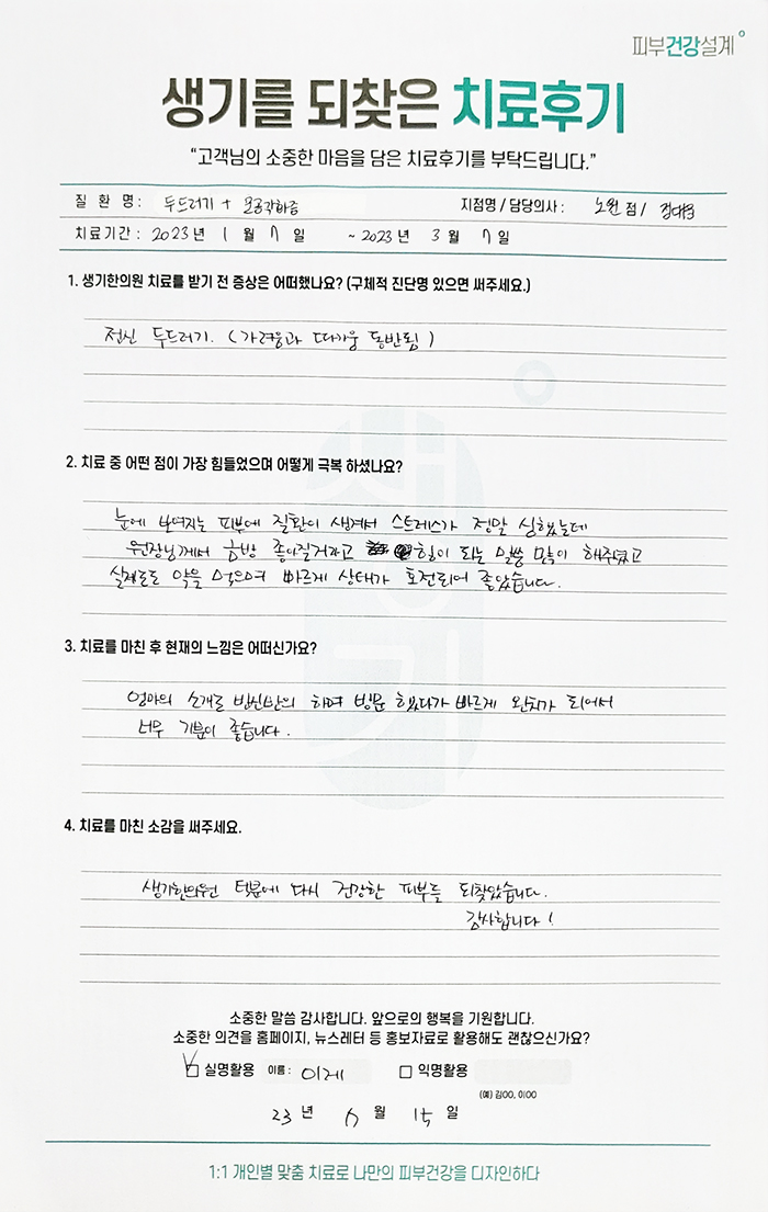 생기한의원과 함께하신 생생한 자필 및 영상 후기를 소개합니다.