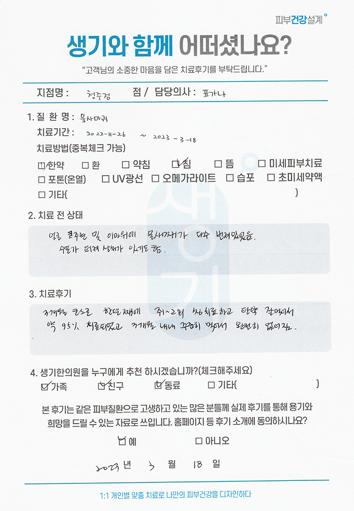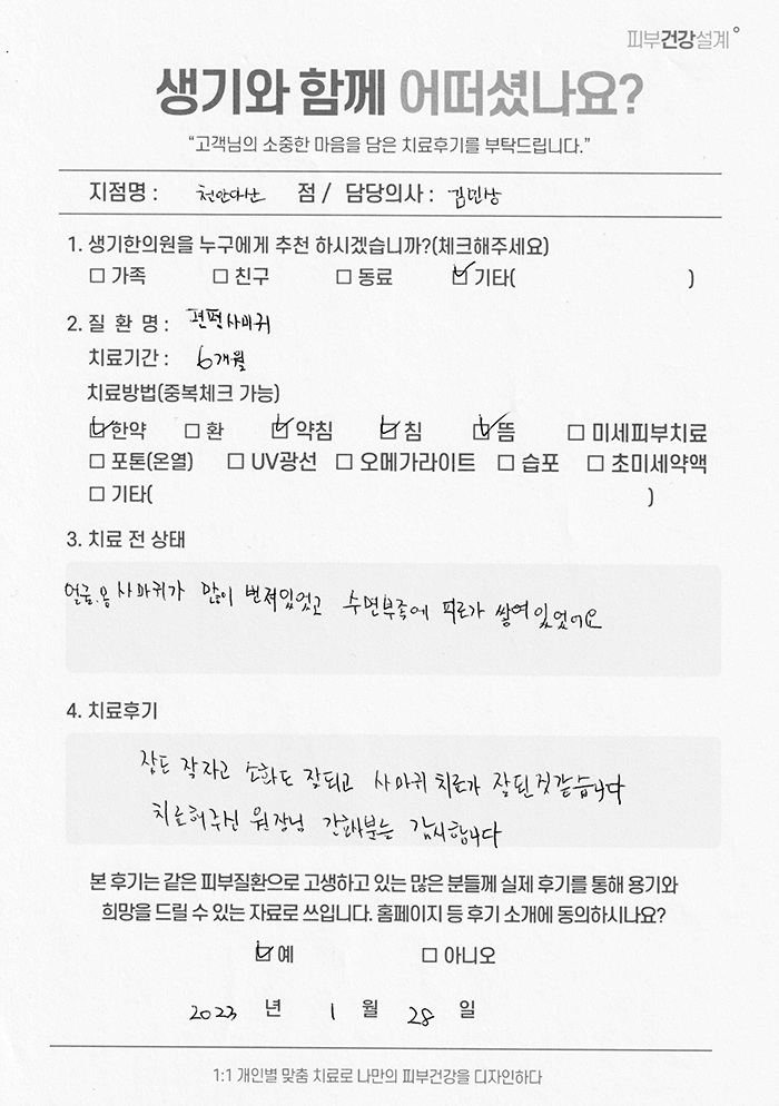 생기한의원과 함께하신 생생한 자필 및 영상 후기를 소개합니다.
