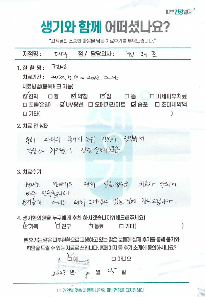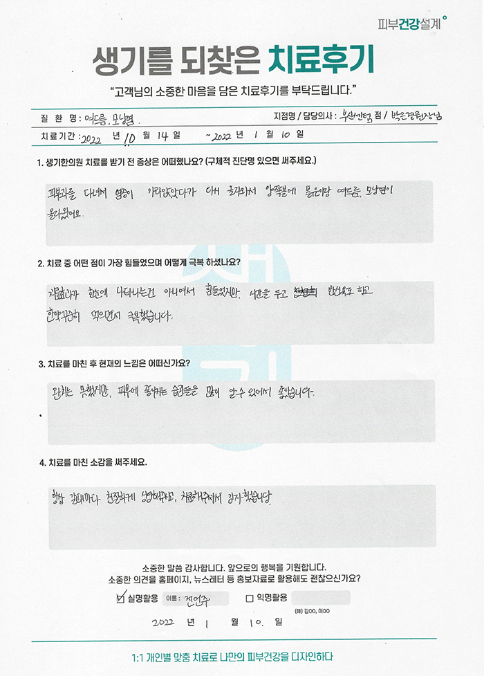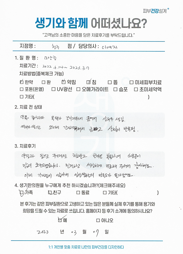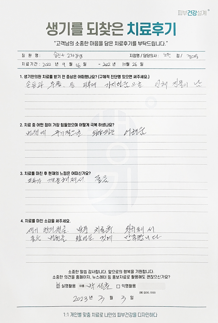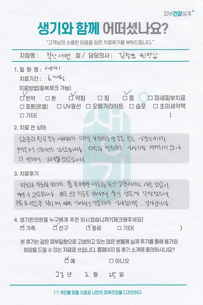 생기한의원과 함께하신 생생한 자필 및 영상 후기를 소개합니다.