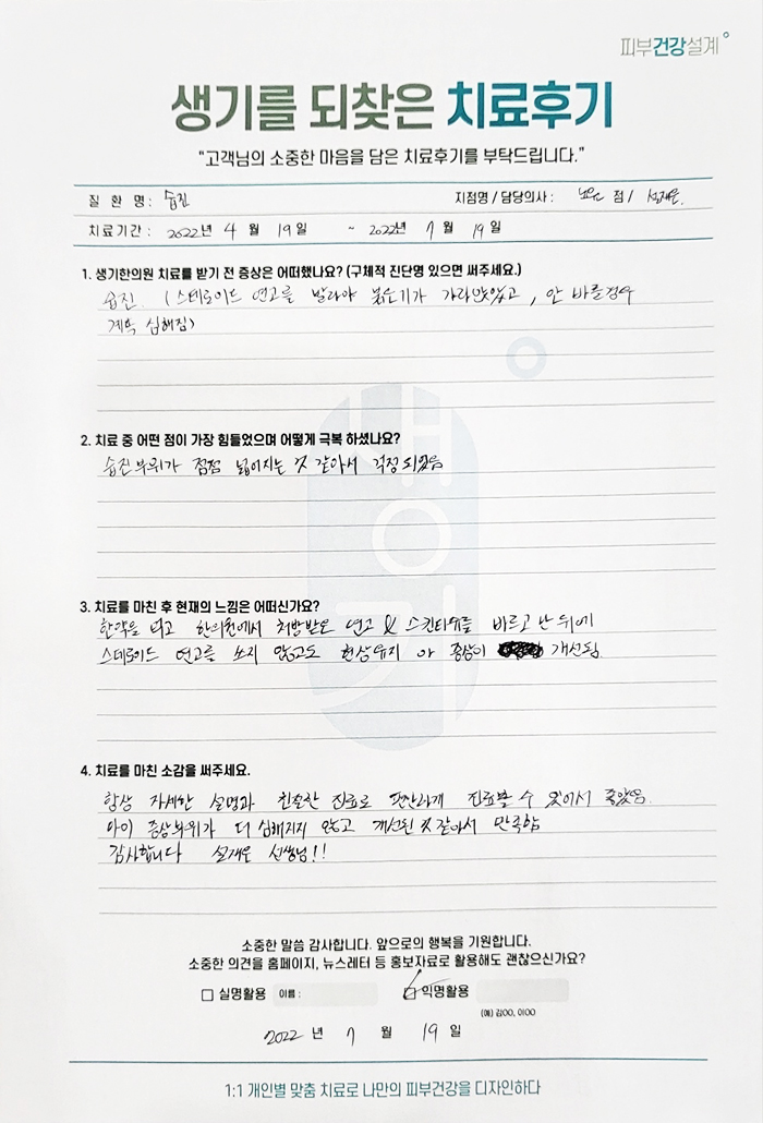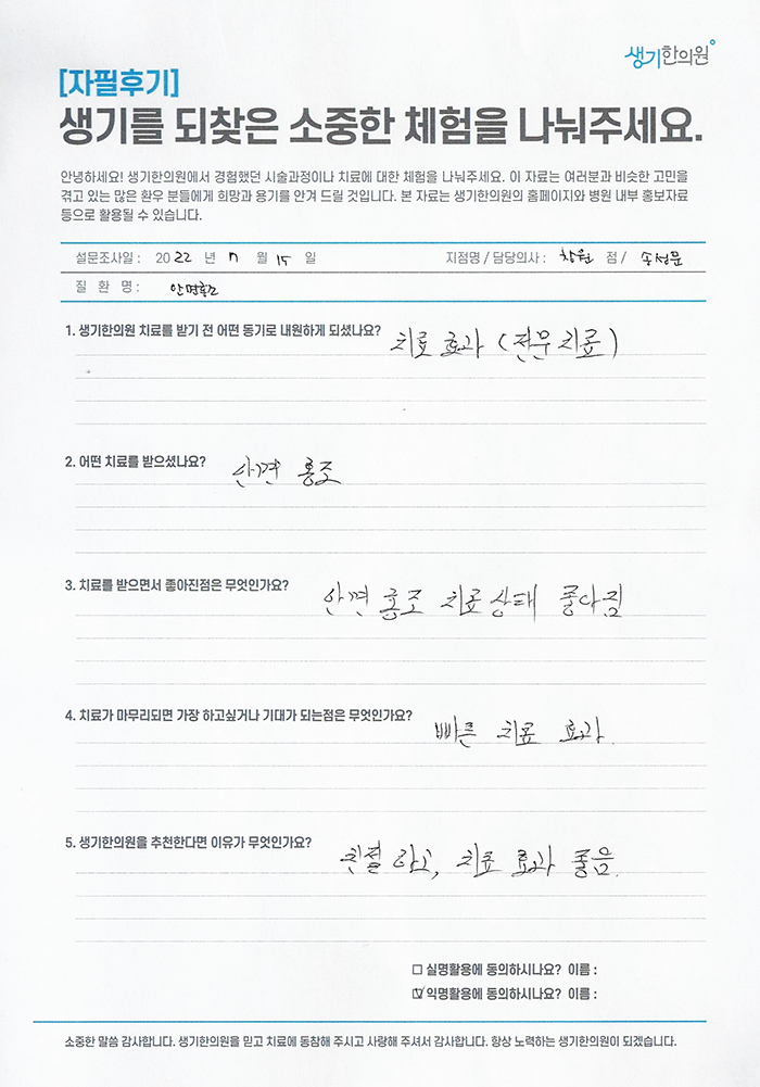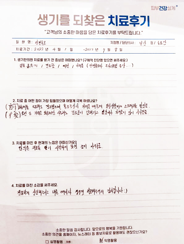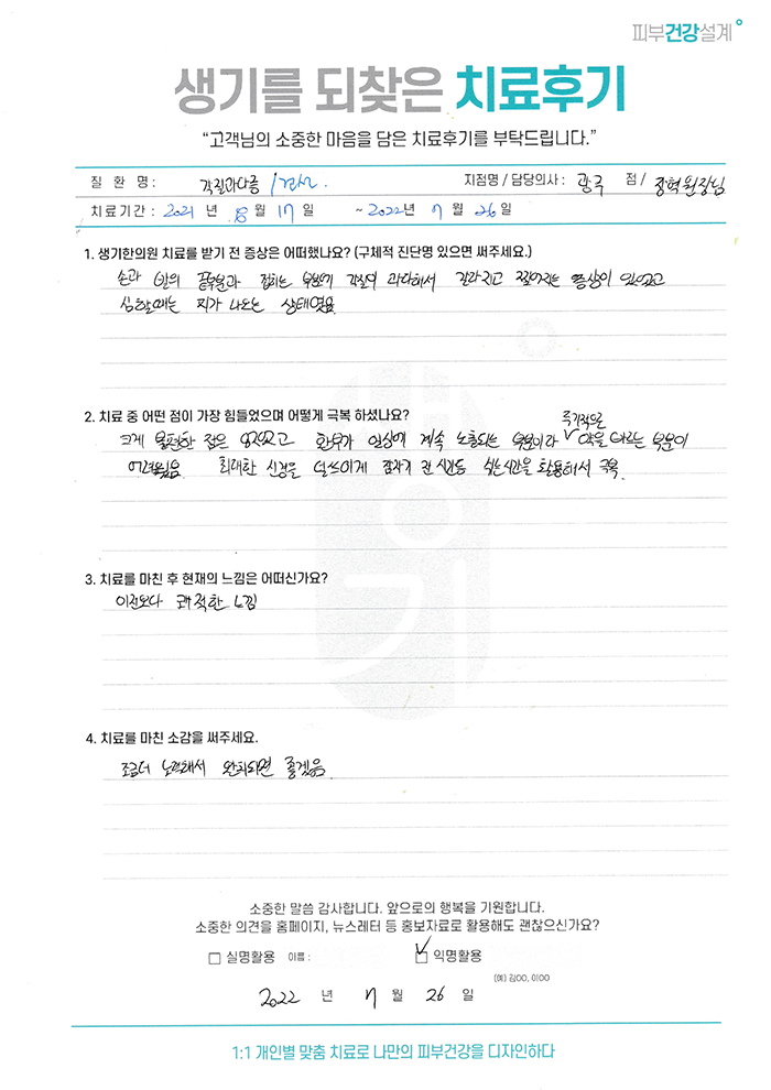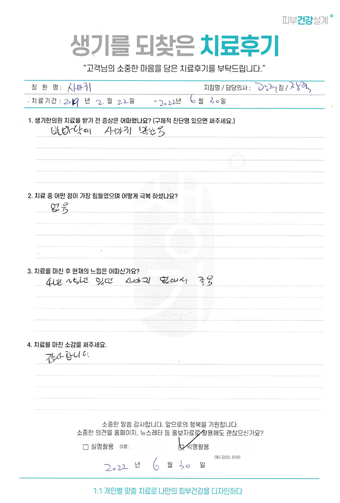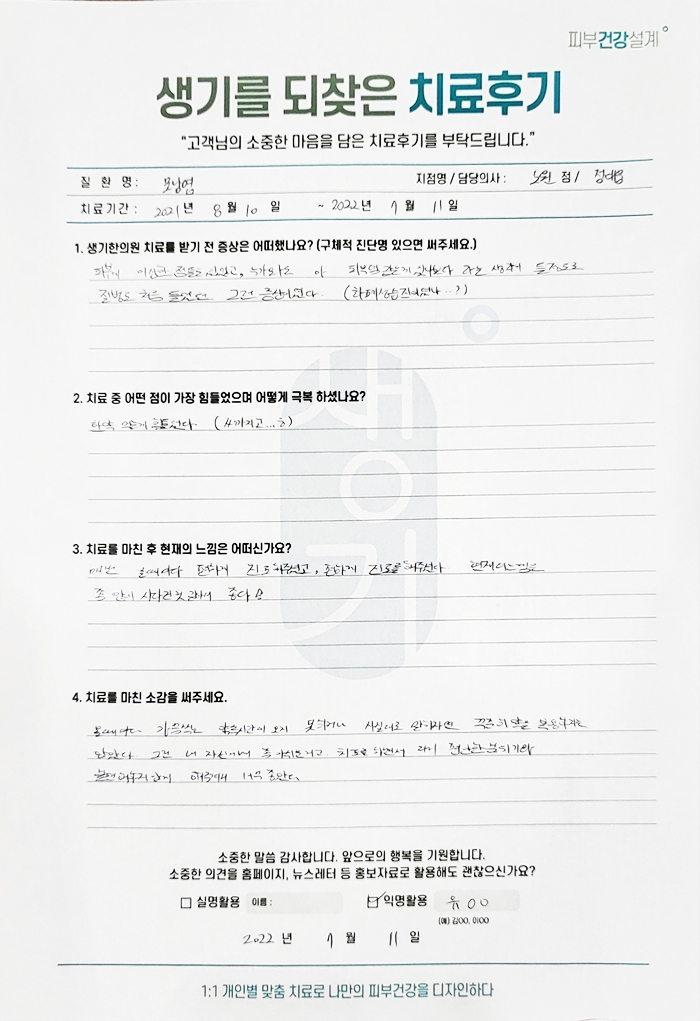 생기한의원과 함께하신 생생한 자필 및 영상 후기를 소개합니다.