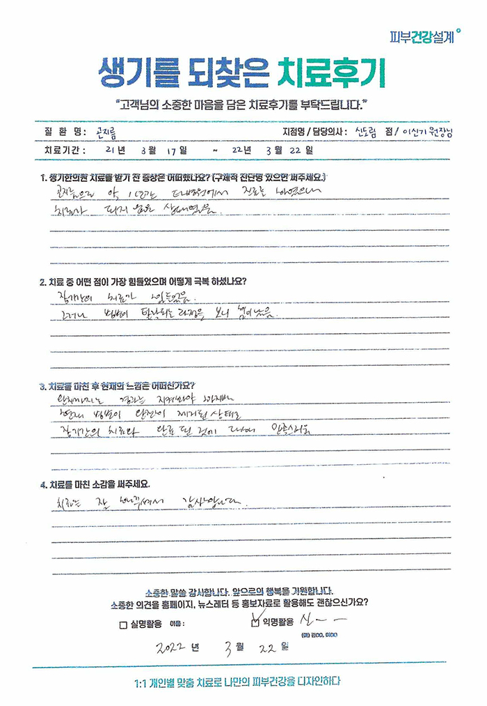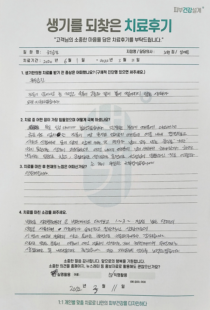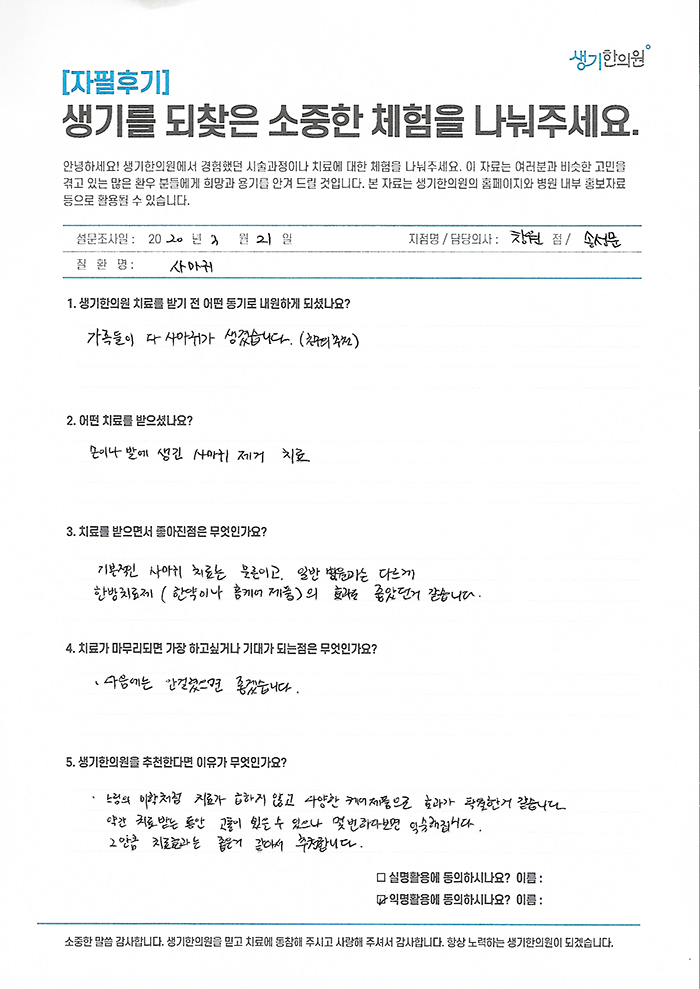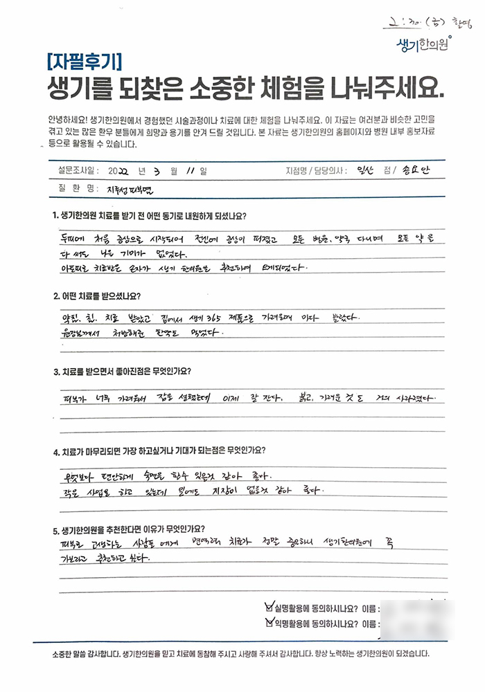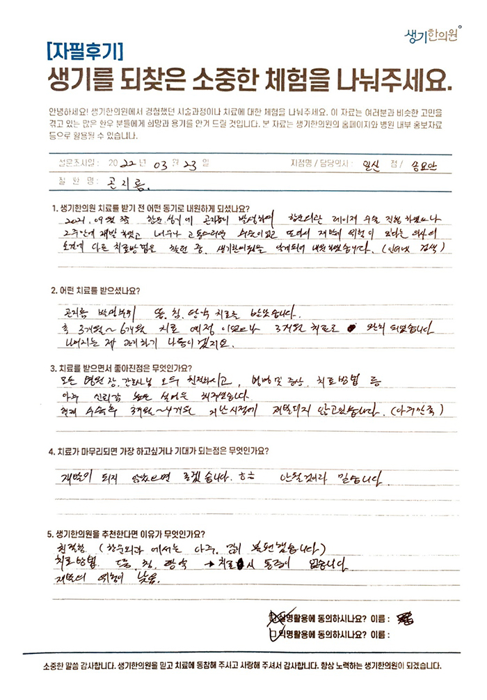 생기한의원과 함께하신 생생한 자필 및 영상 후기를 소개합니다.