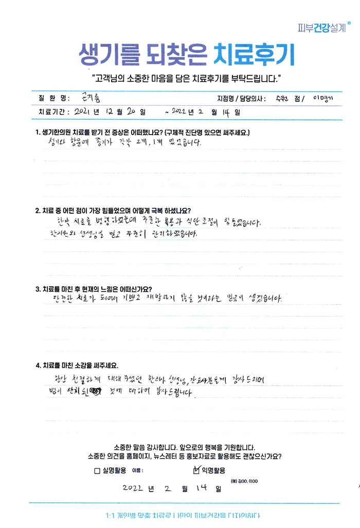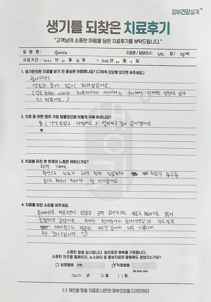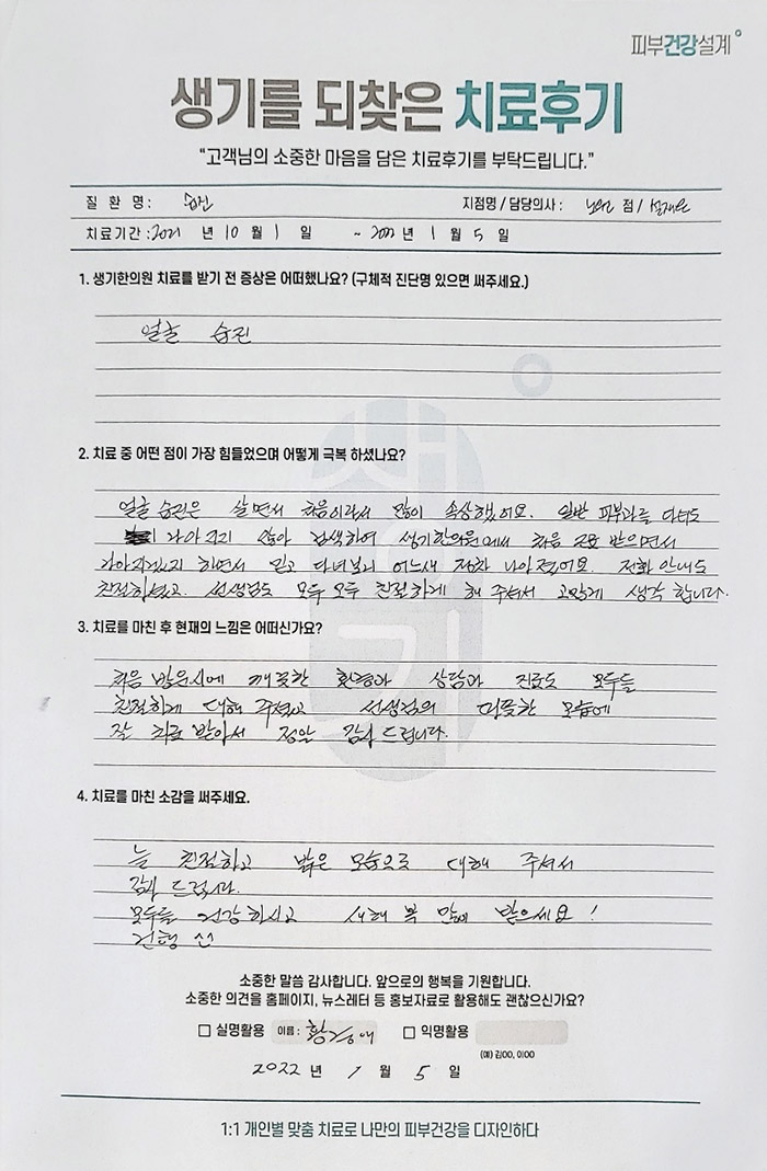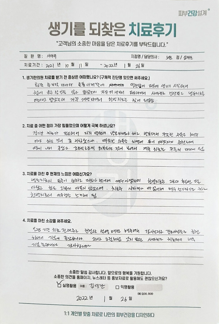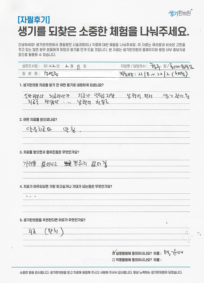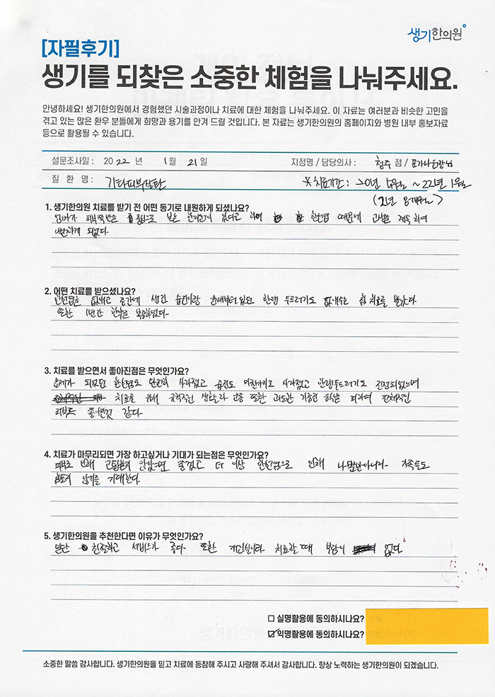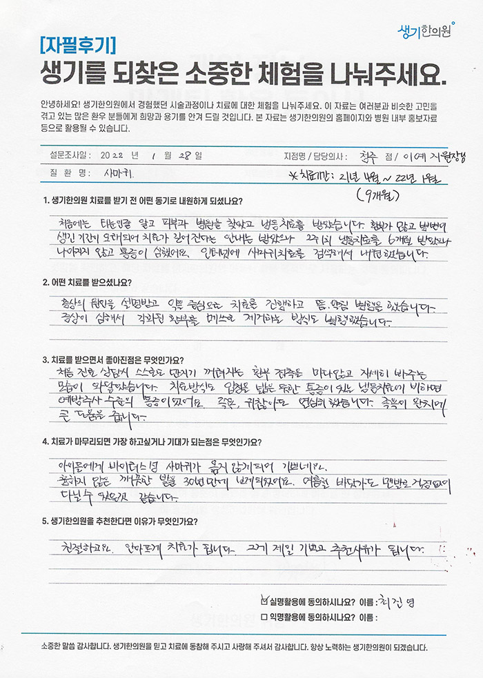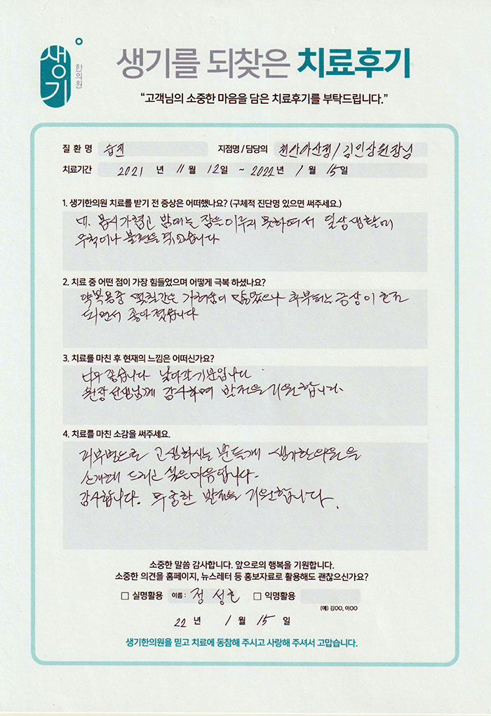 생기한의원과 함께하신 생생한 자필 및 영상 후기를 소개합니다.