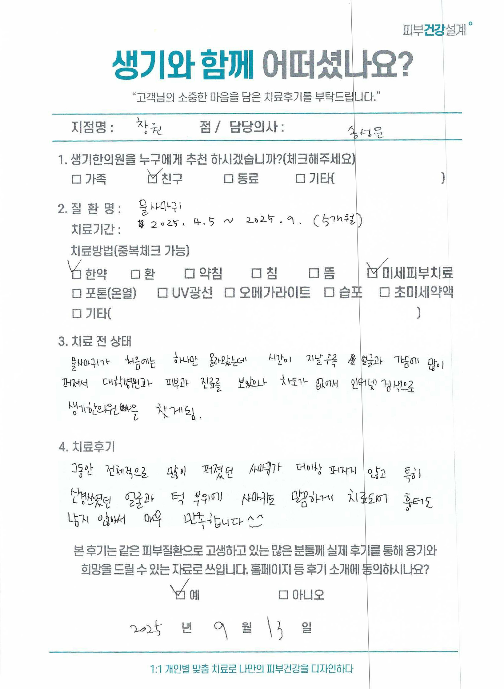 생기한의원과 함께하신 생생한 자필 및 영상 후기를 소개합니다.
