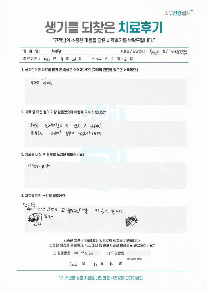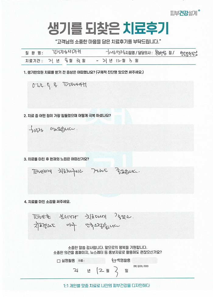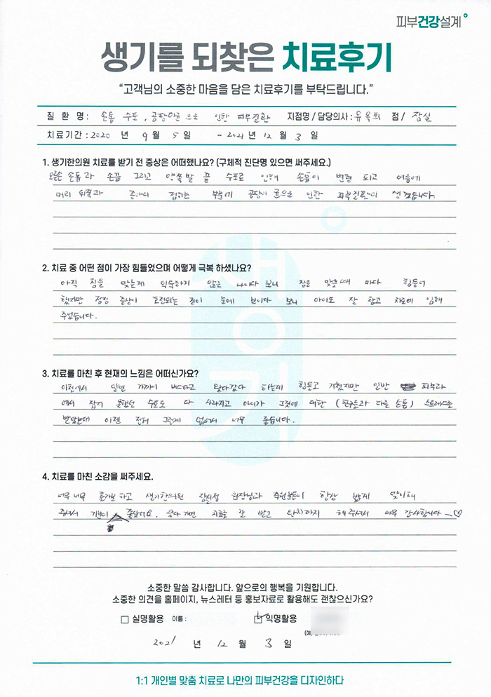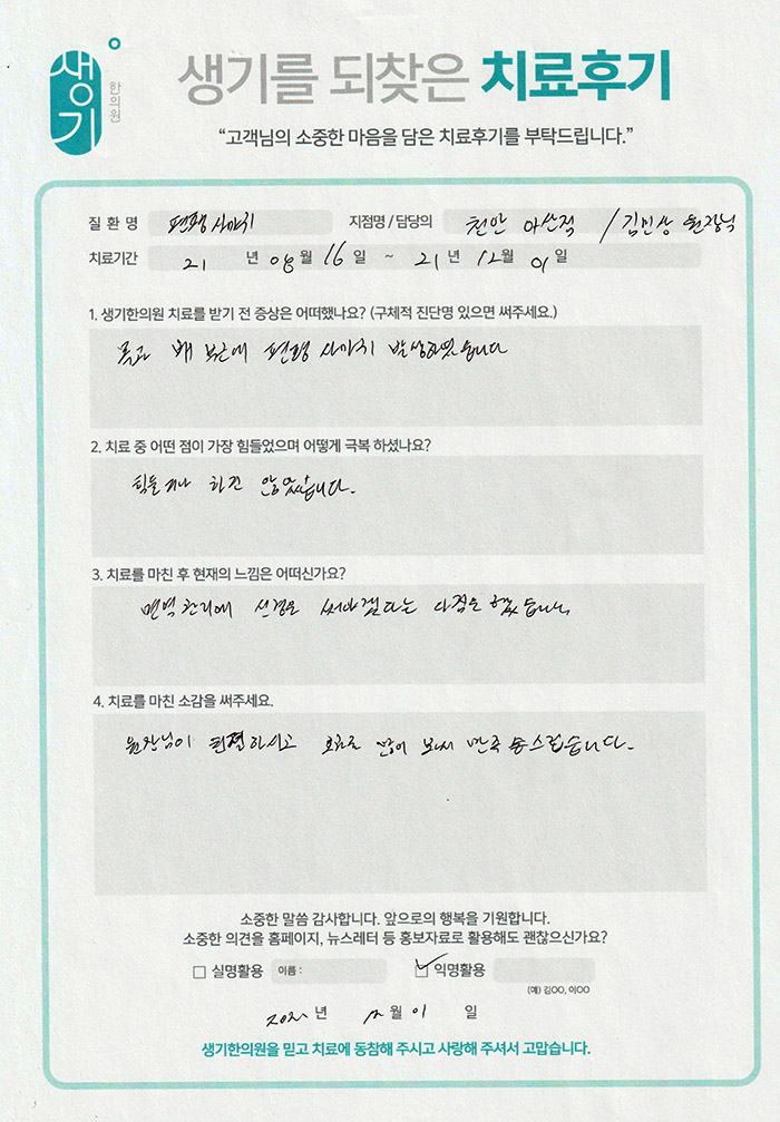 생기한의원과 함께하신 생생한 자필 및 영상 후기를 소개합니다.