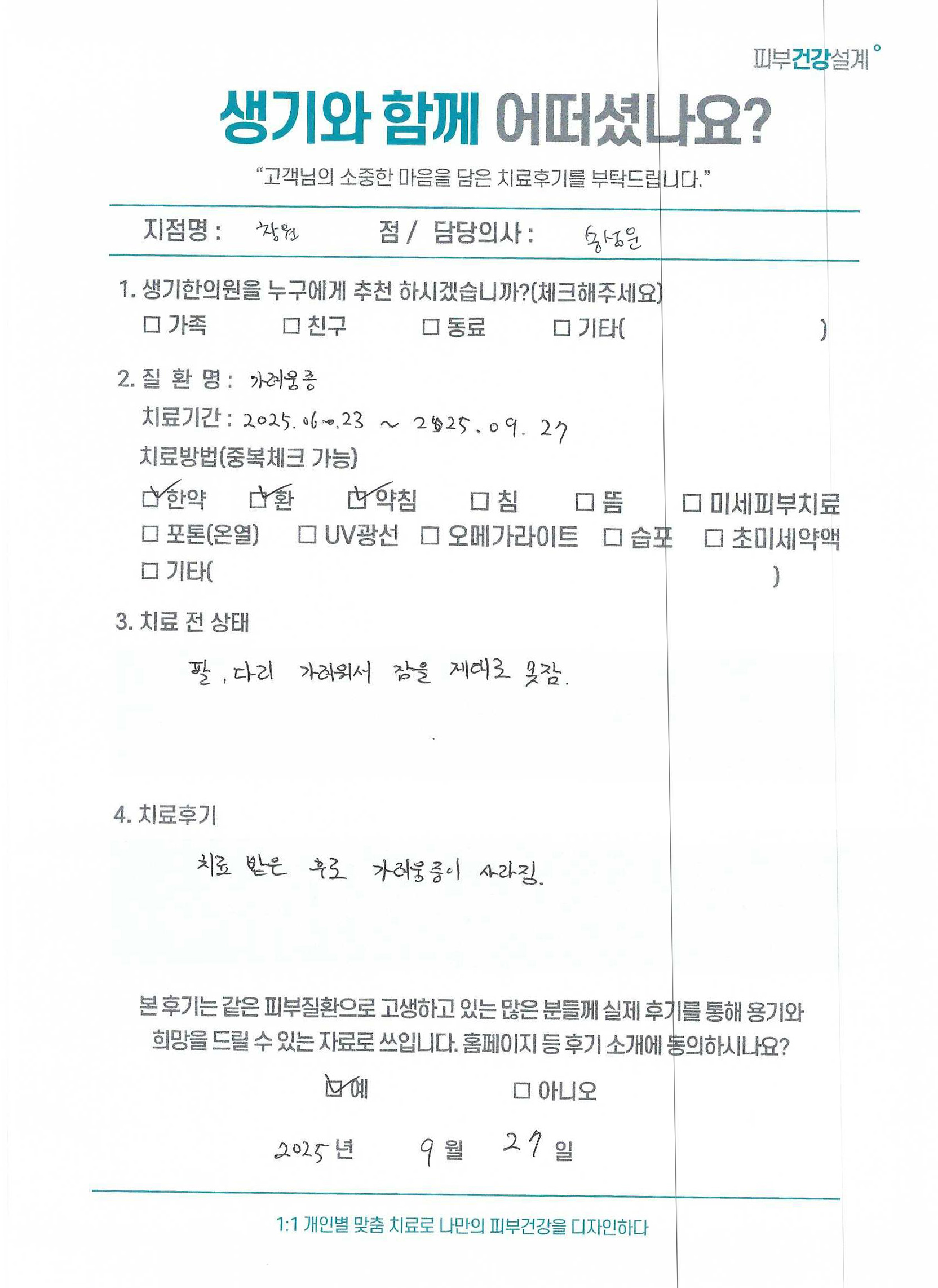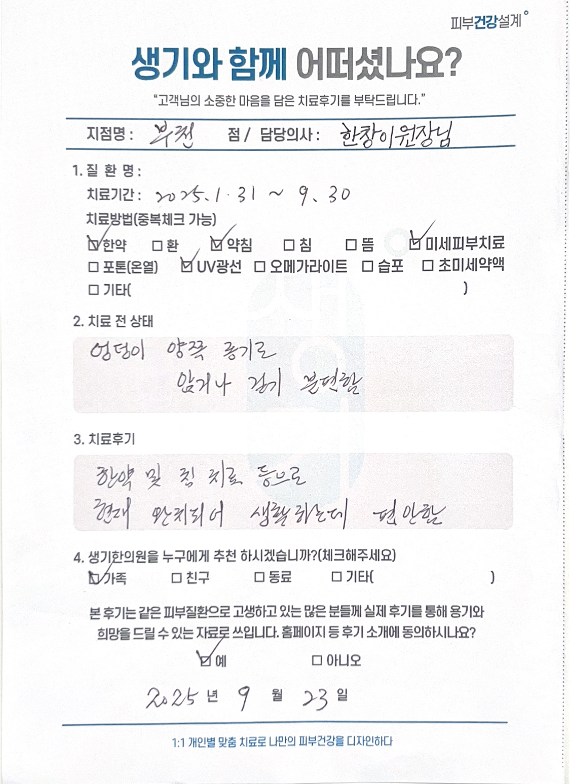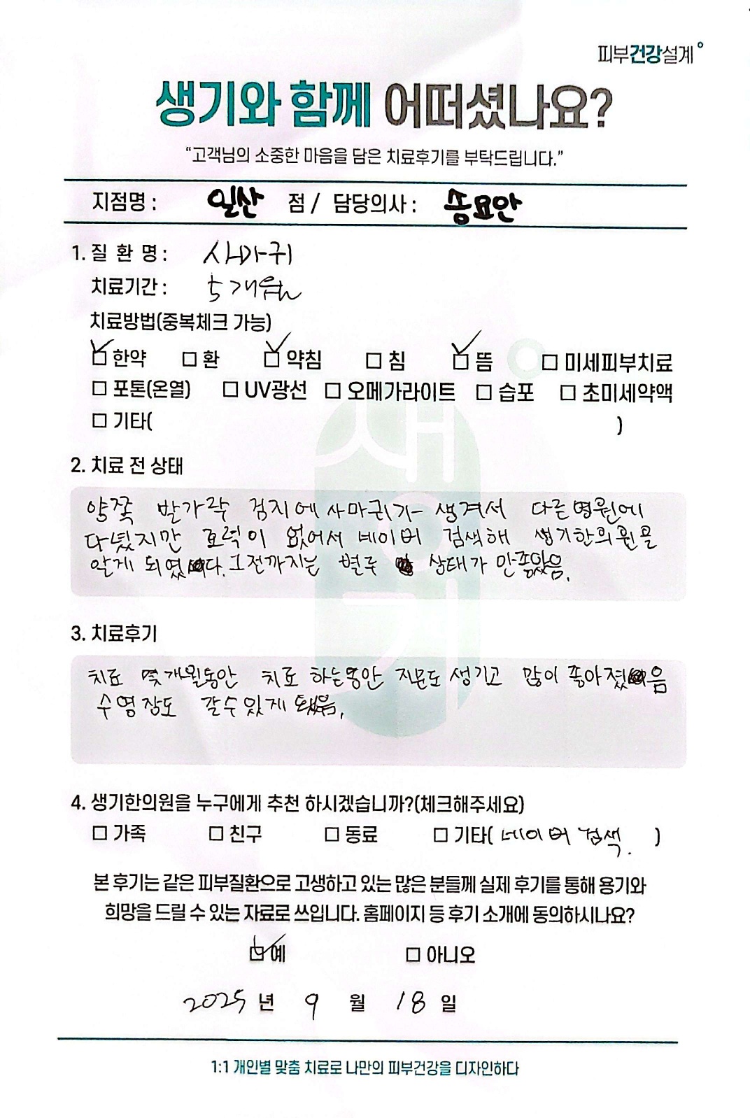 생기한의원과 함께하신 생생한 자필 및 영상 후기를 소개합니다.