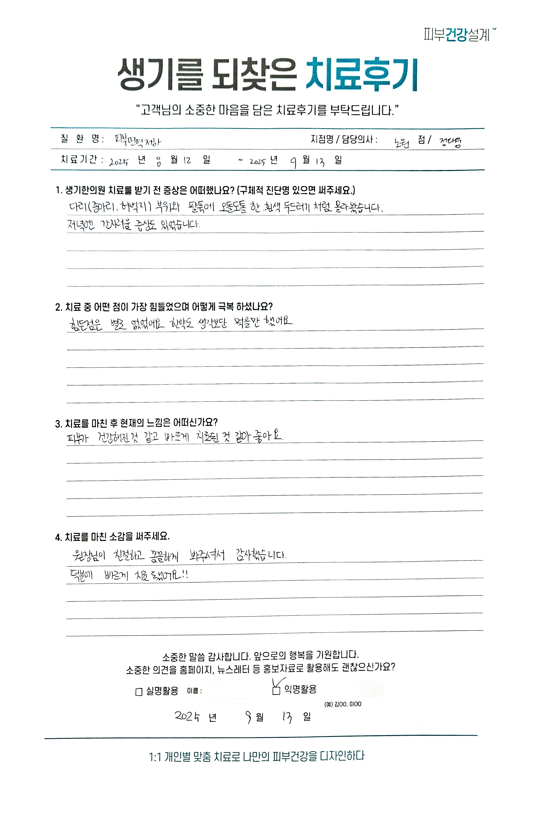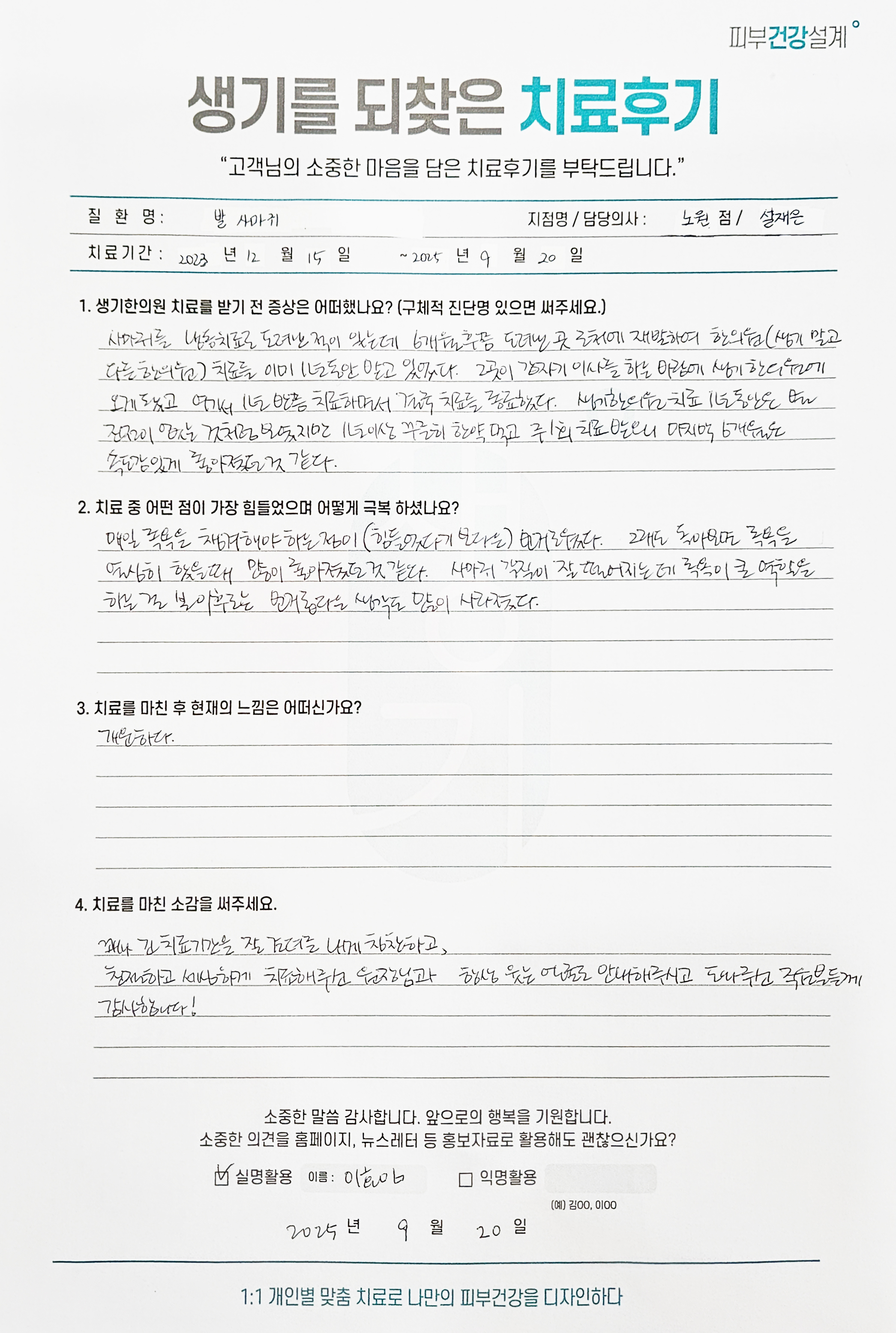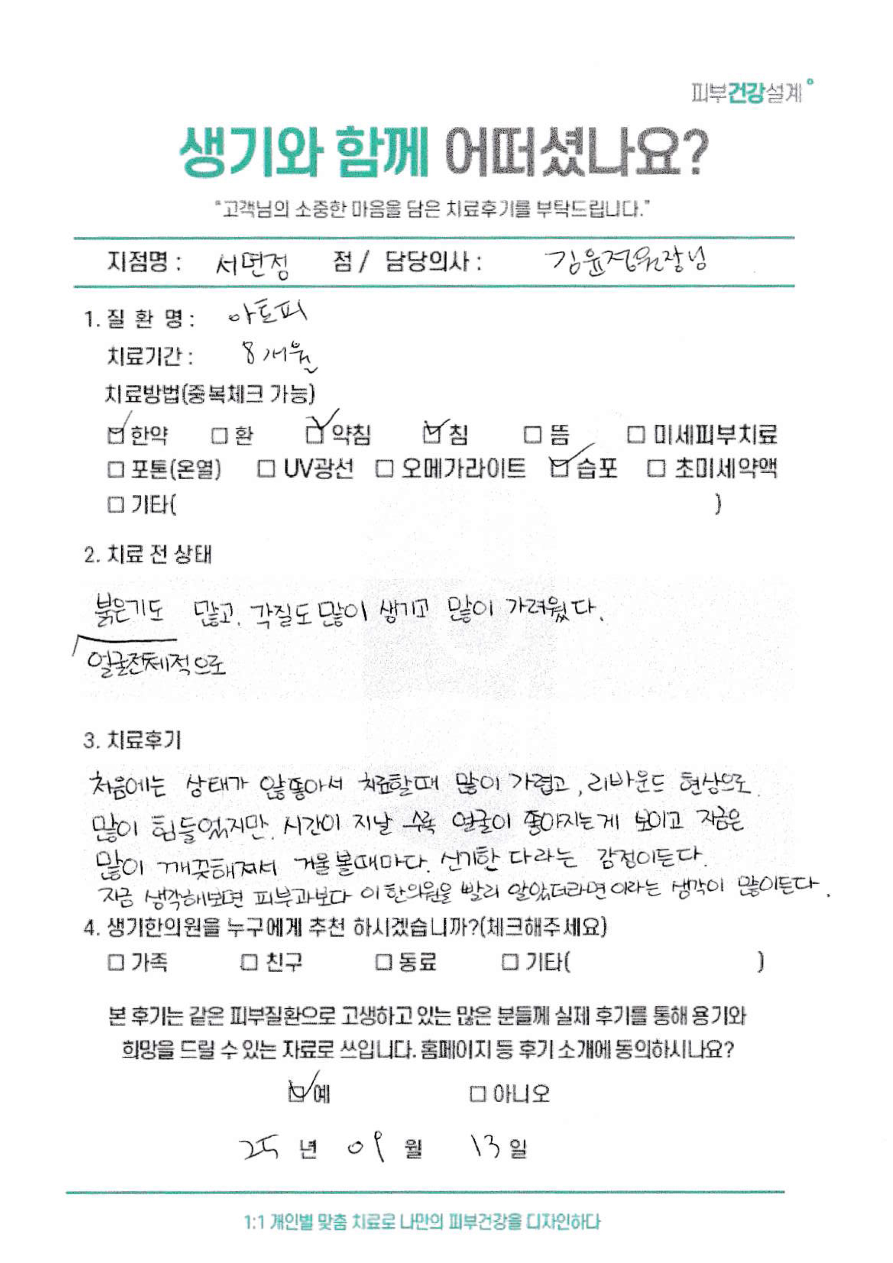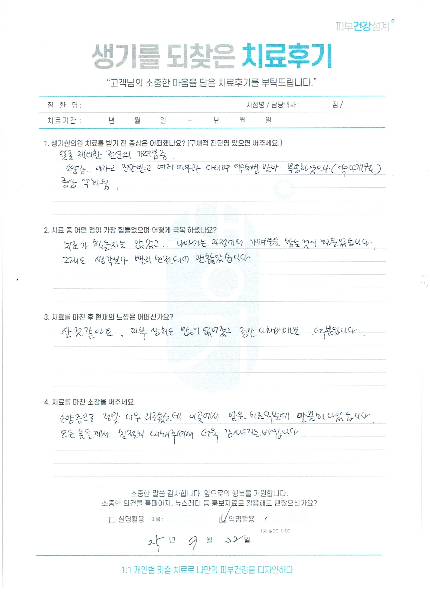 생기한의원과 함께하신 생생한 자필 및 영상 후기를 소개합니다.